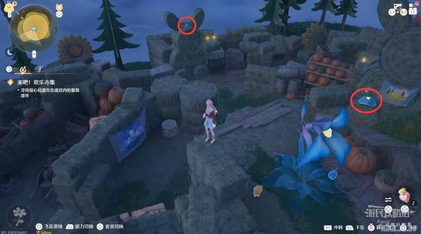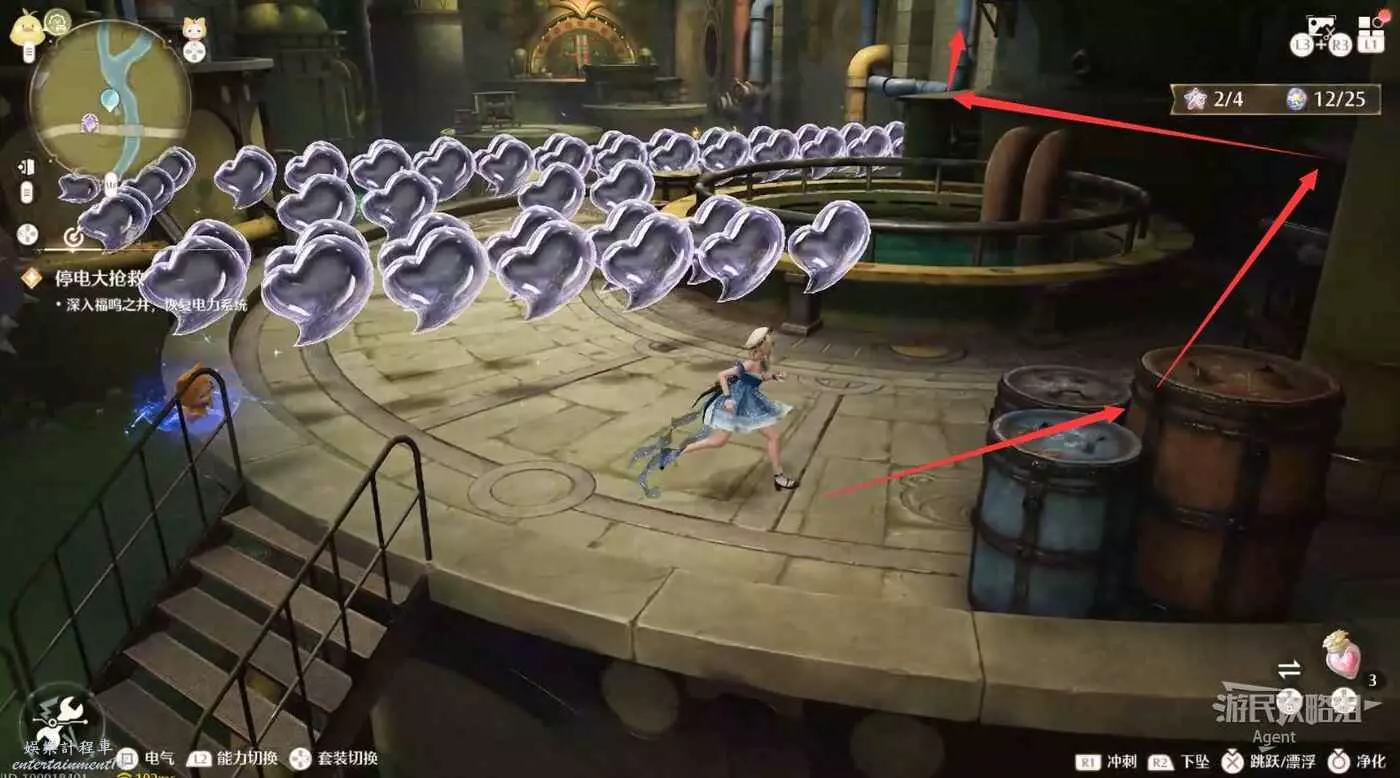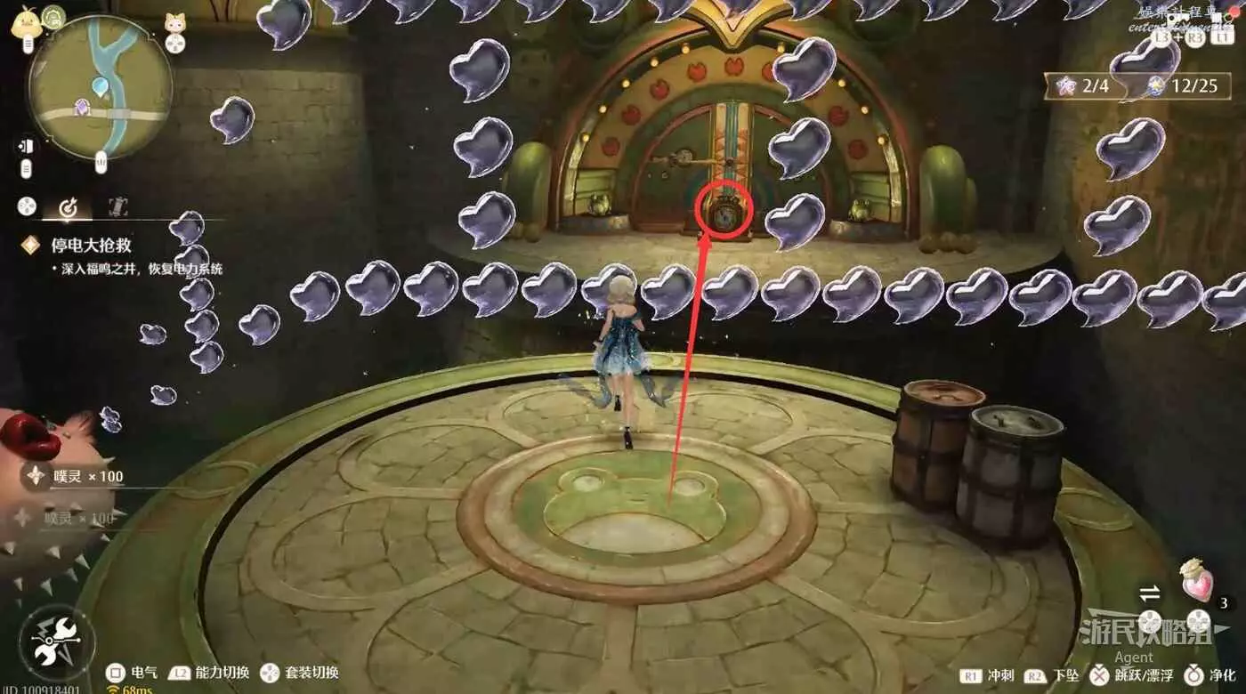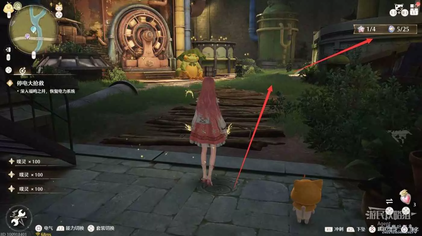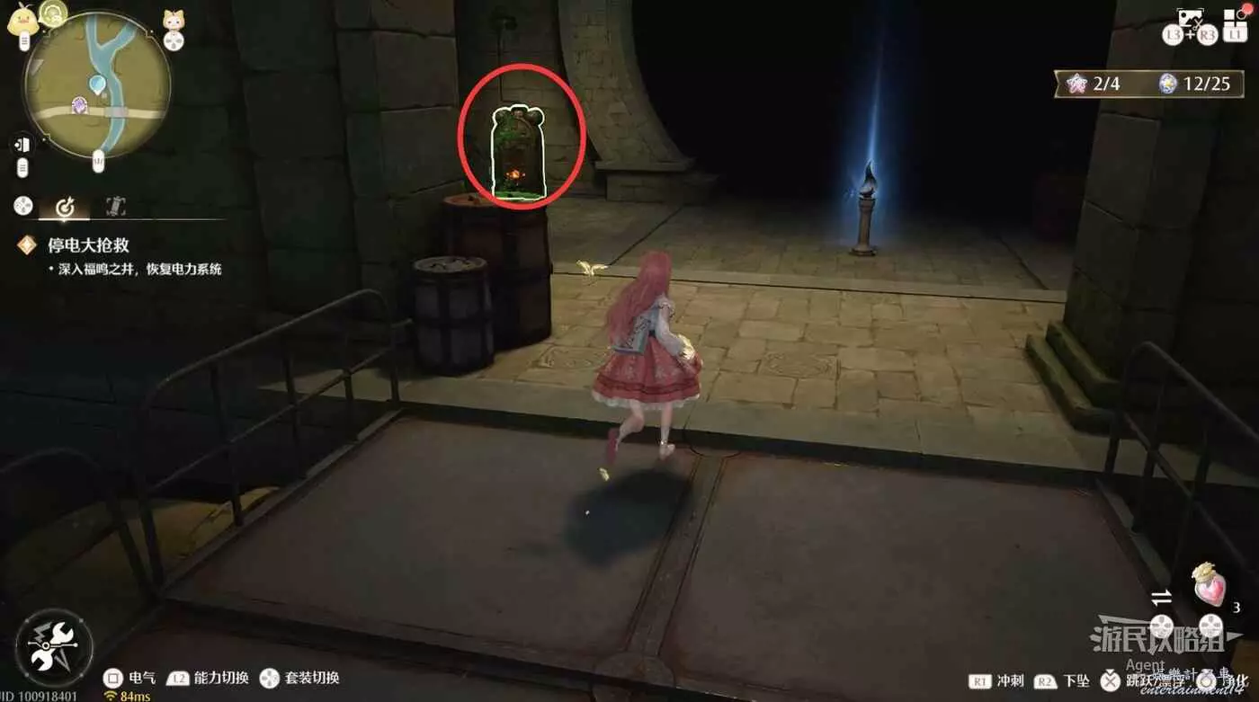和楞哥呆妹對話後,修好周圍的三個火花燈。