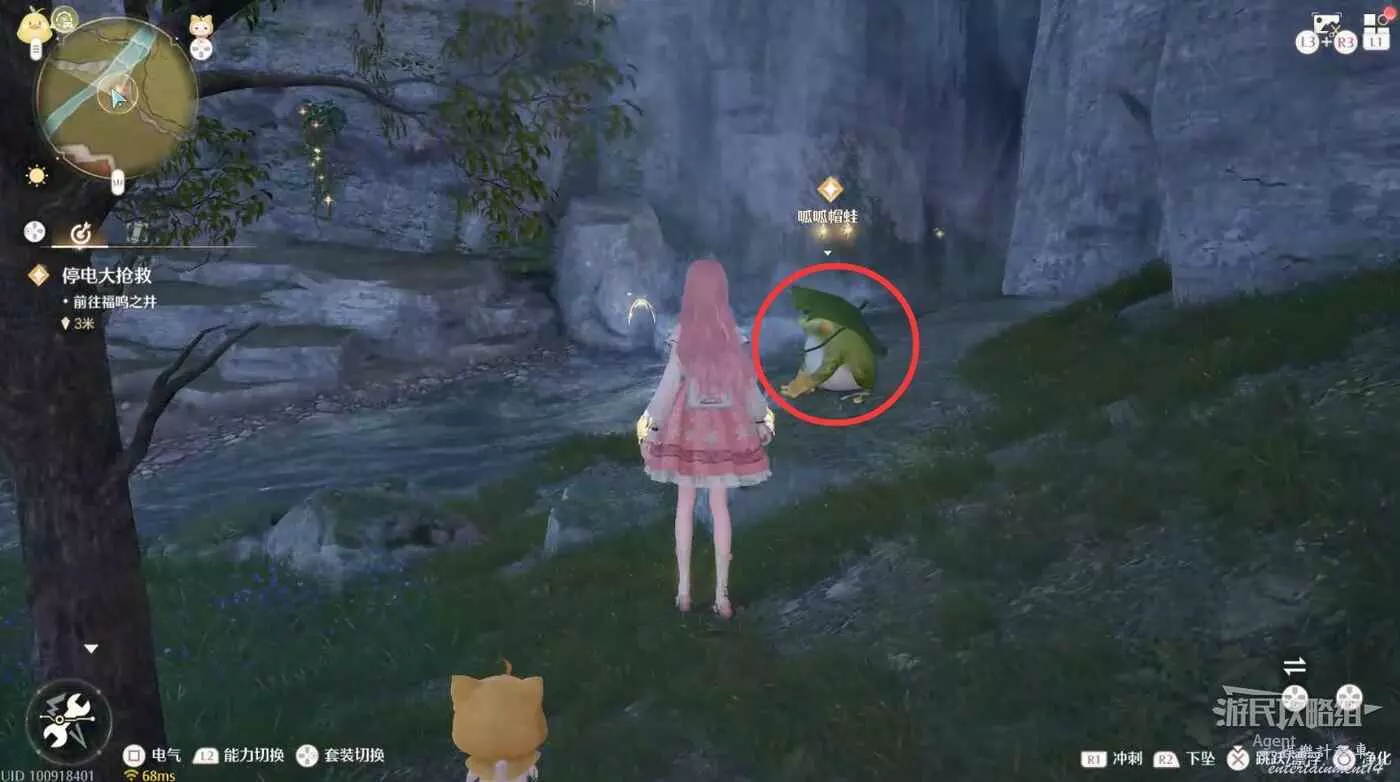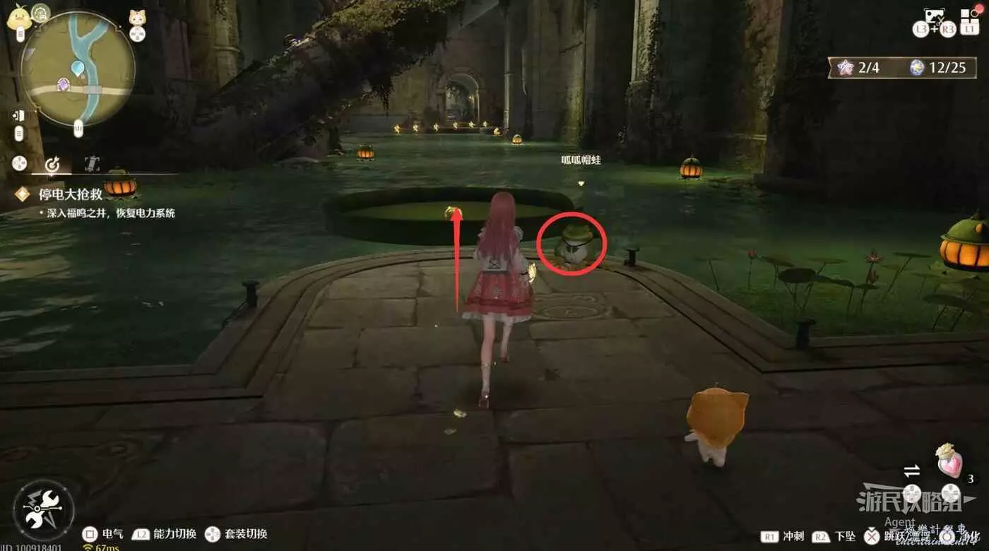 找呱呱帽蛙拿到鑰匙,它還會給你療愈花露。