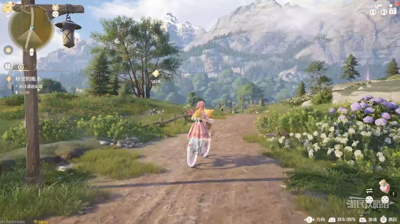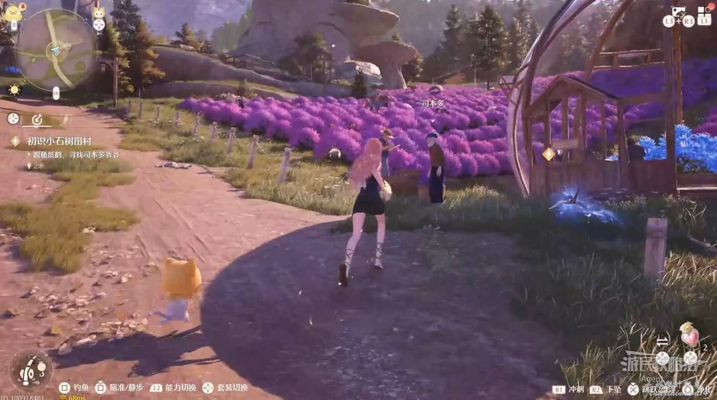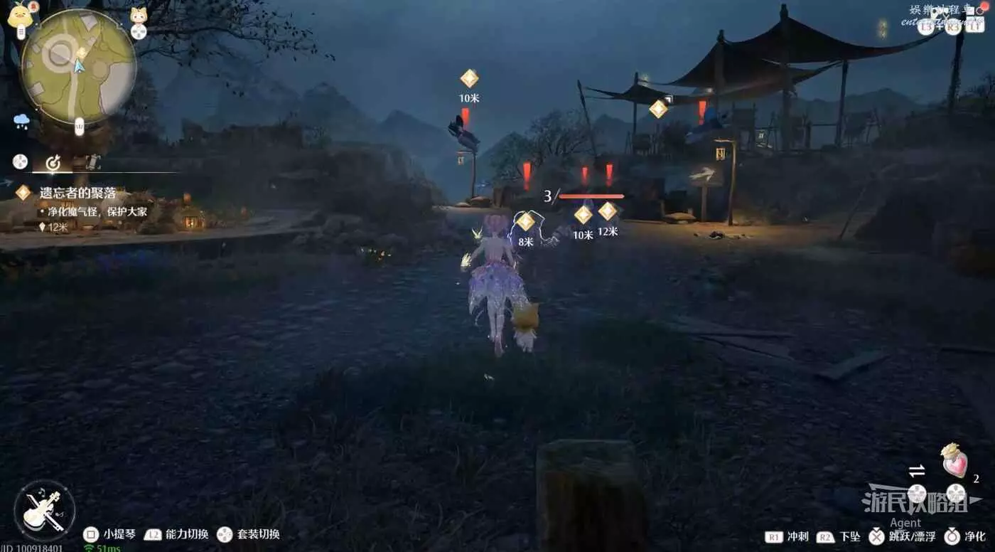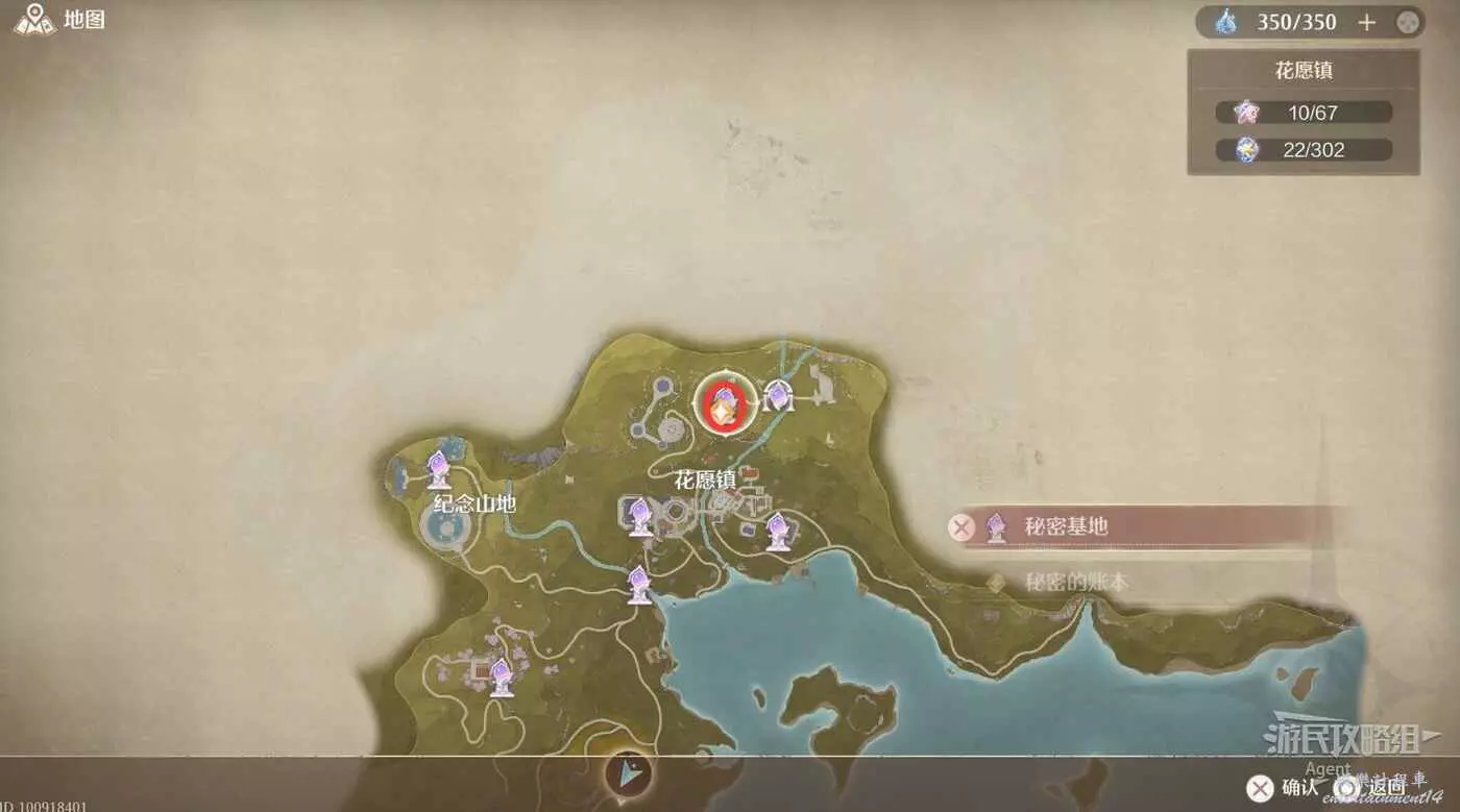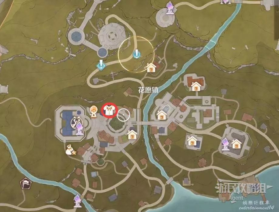 地圖上的黃點是主線任務目標,前往花願鎮。