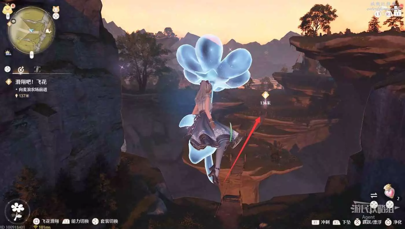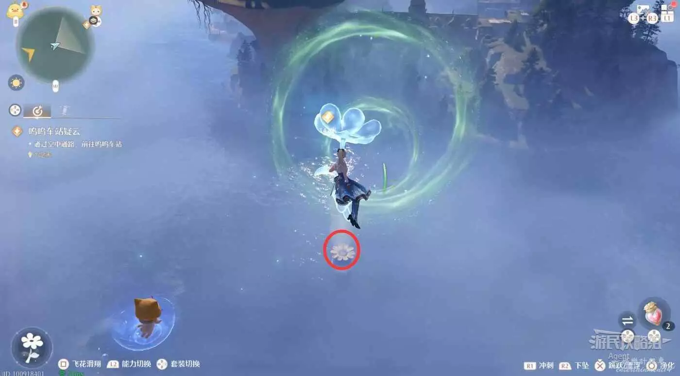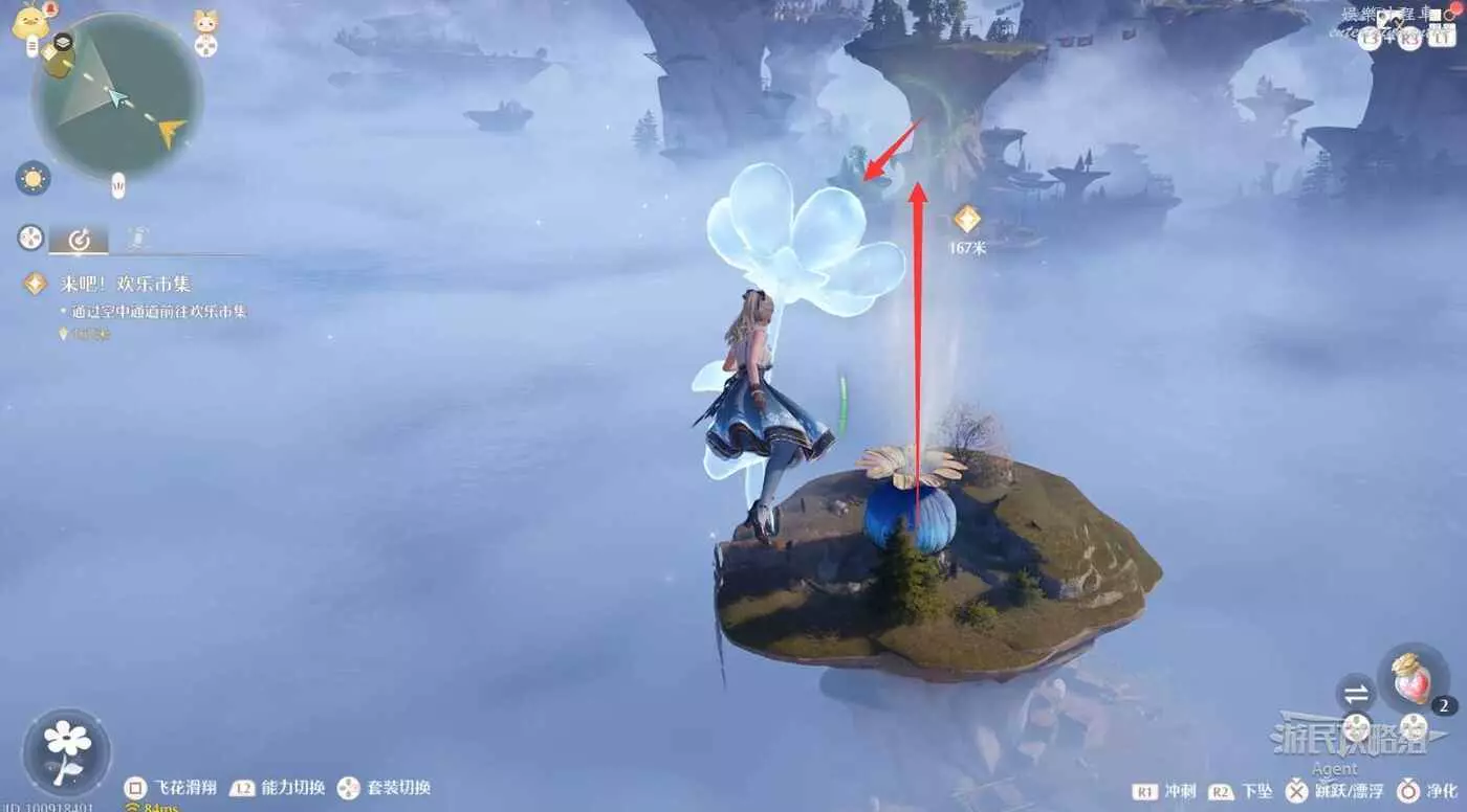 滑翔的最後一段,建議在風柱底部的花上停留一下,歇歇再繼續。