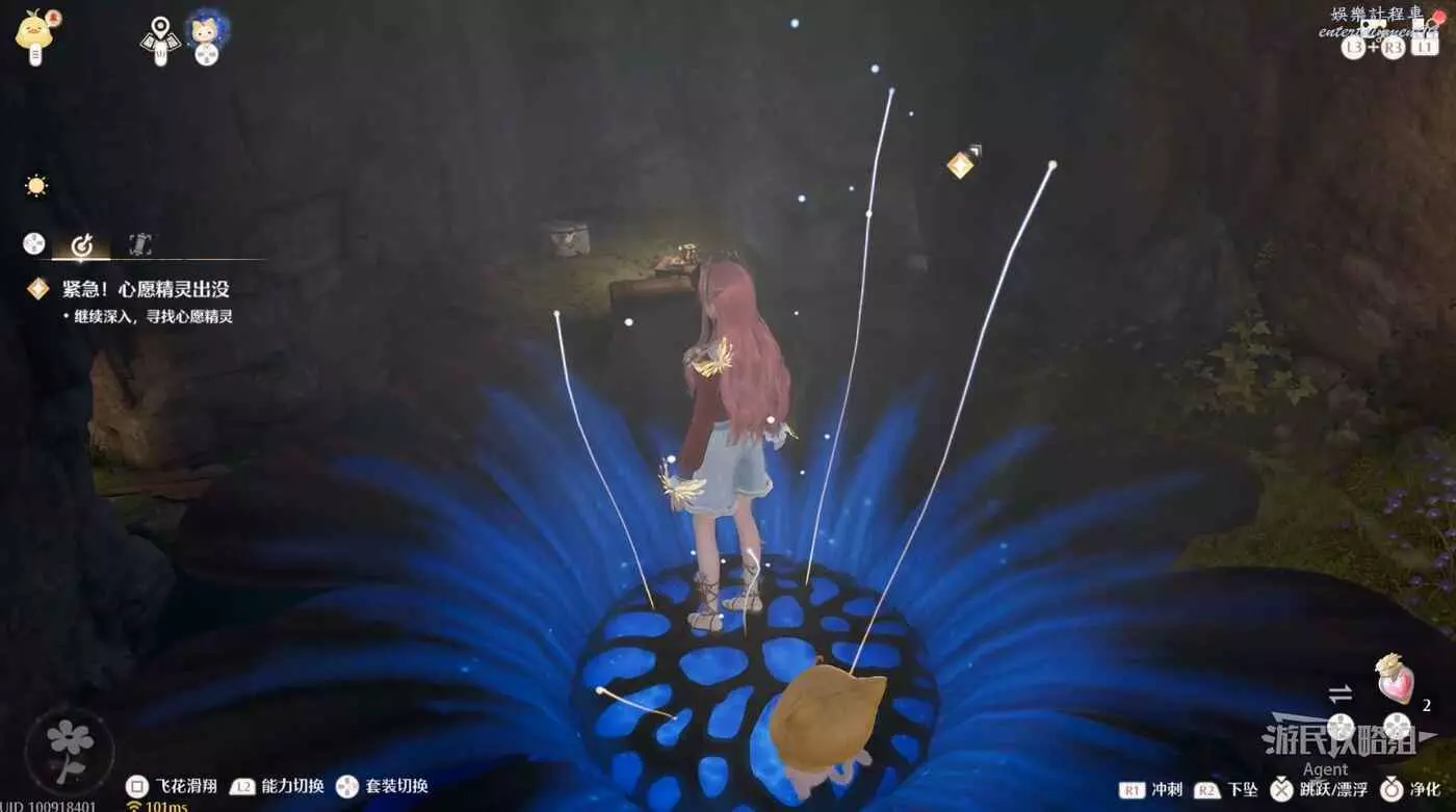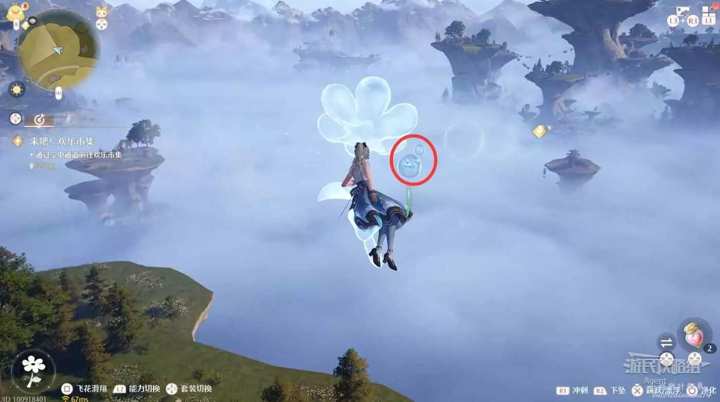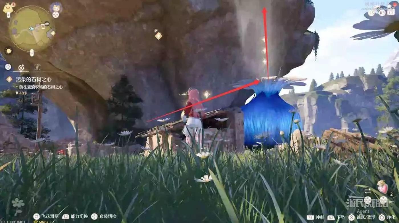 滑翔的最後一段,建議在風柱底部的花上停留一下,歇歇再繼續。