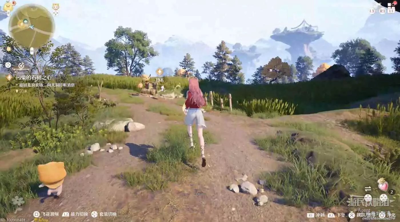 往前跑酷的路上,大部分時間都需要處於變小狀態,如果需要變大時也可以變大。在探索大地圖時,很多收集奇想星的解謎,就需要變大變小隨時切換。