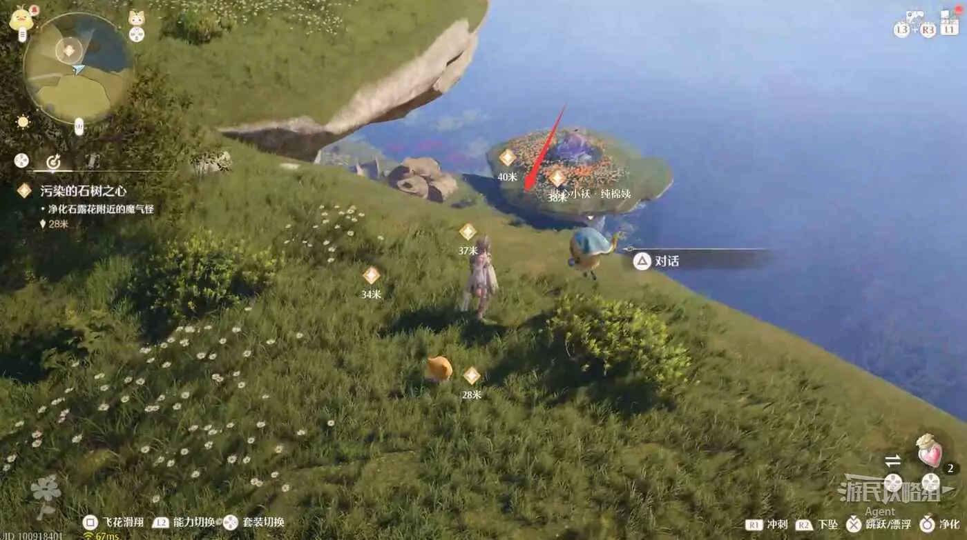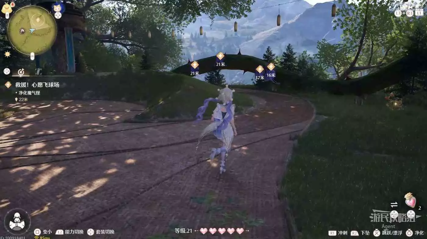 往前走遇到怪物,目前還沒有淨化能力不能發射淨化彈,先去左邊收集兩個奇想星。