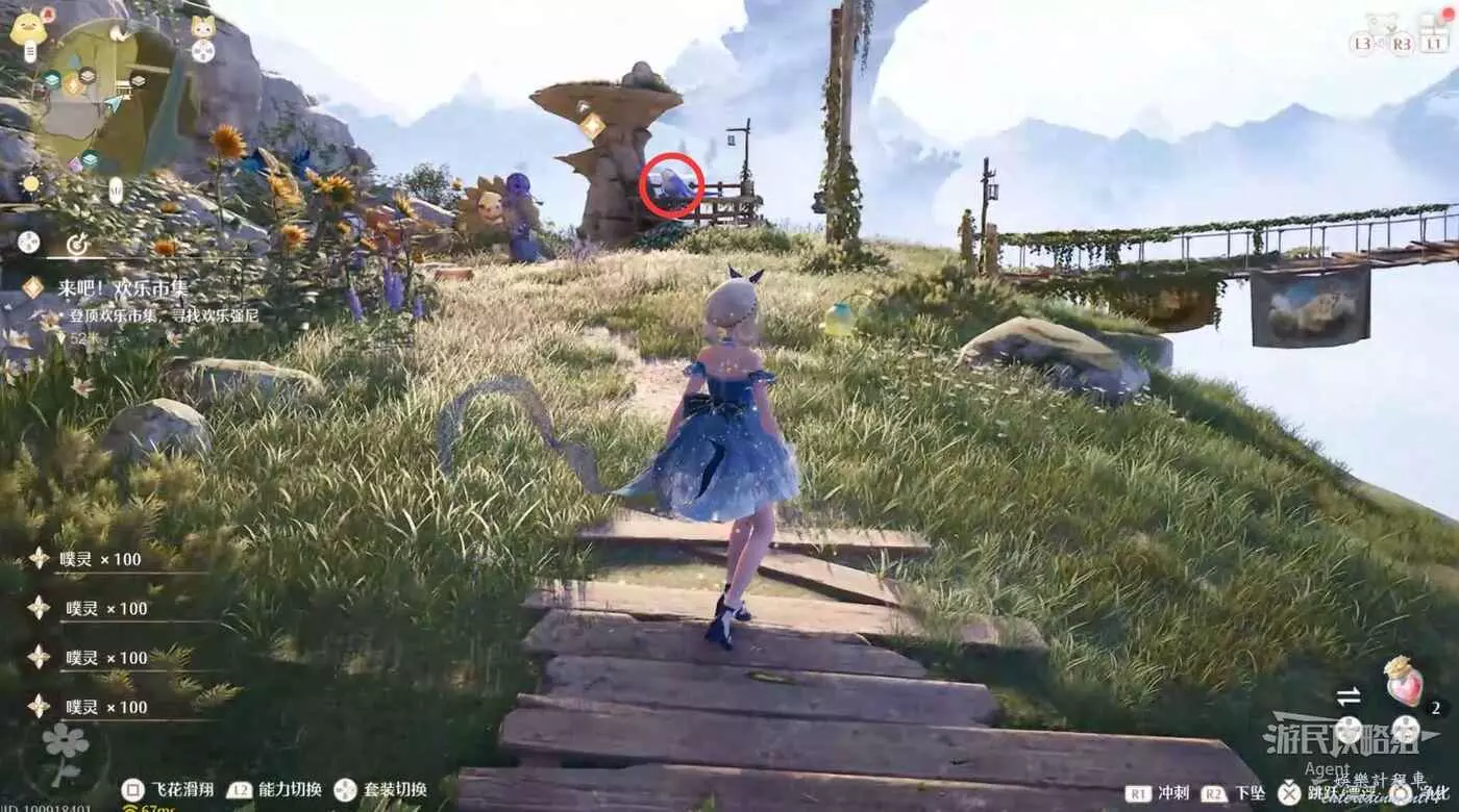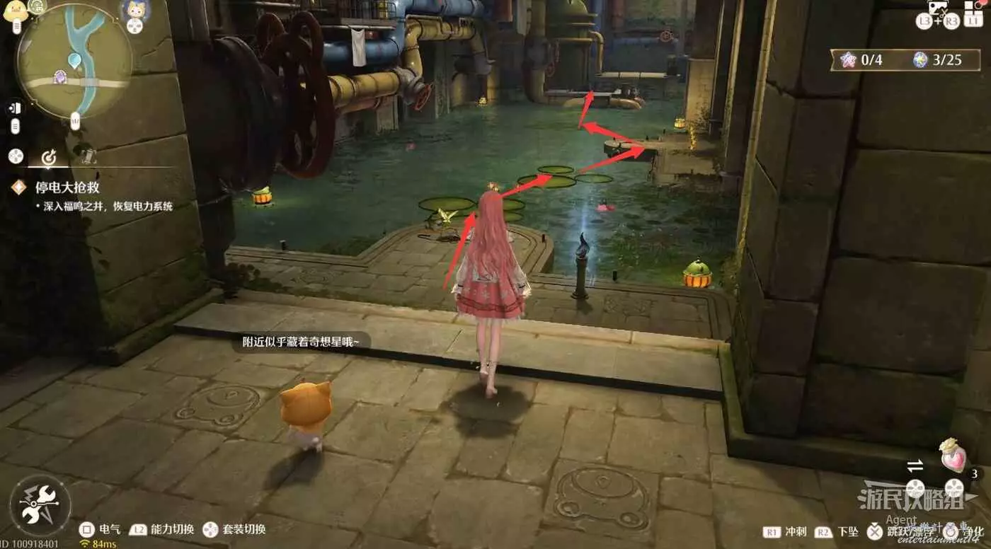 開啟大喵視野,在城裡收集奇想星,有些需要跳到房頂去撿。