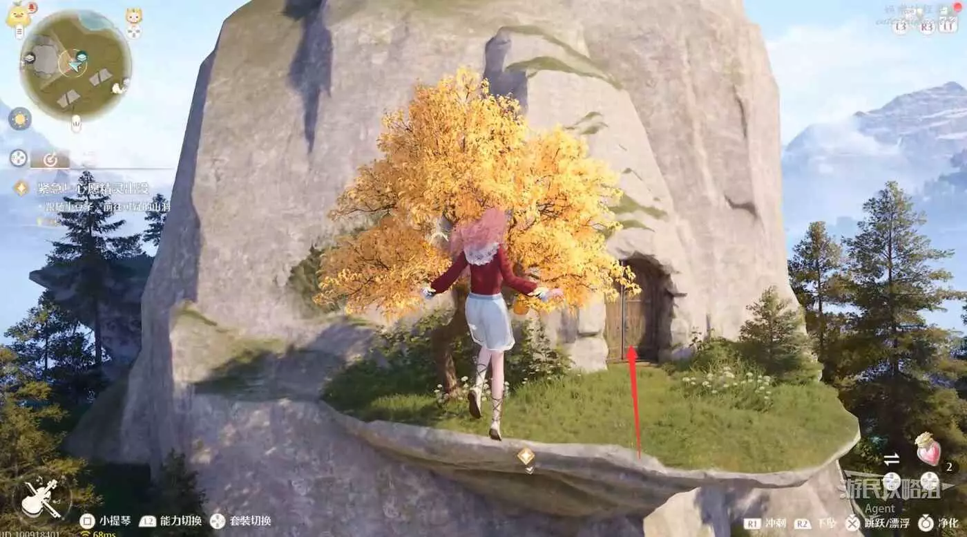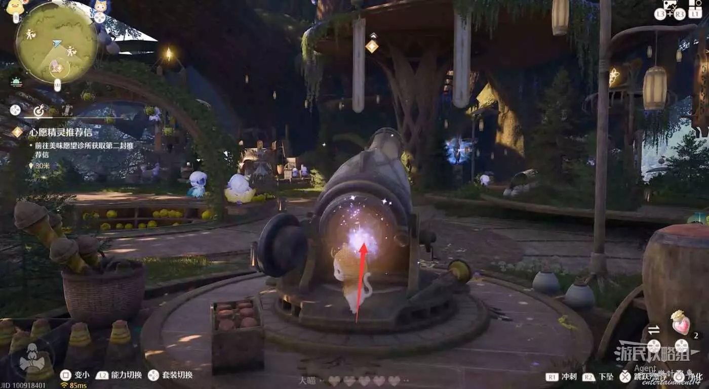 來到千願巨樹,變小之後進入大炮,利用大炮把自己發射到高處。