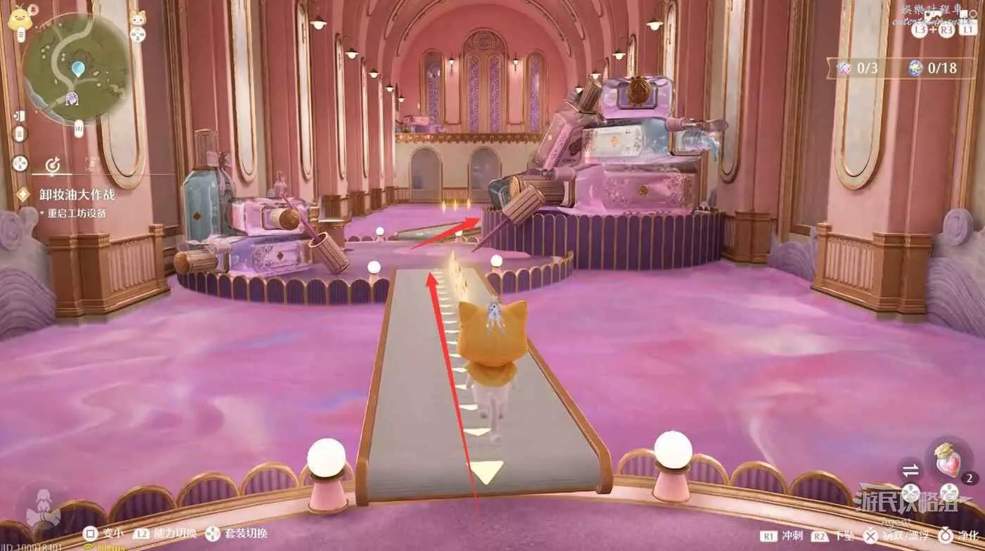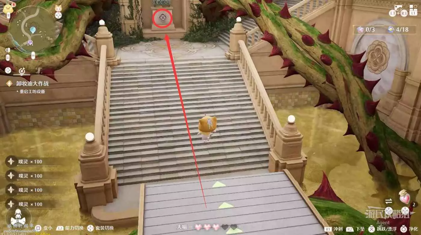 最後一段路需要注意避開荊棘刺,最後到終點重啟工坊設備。