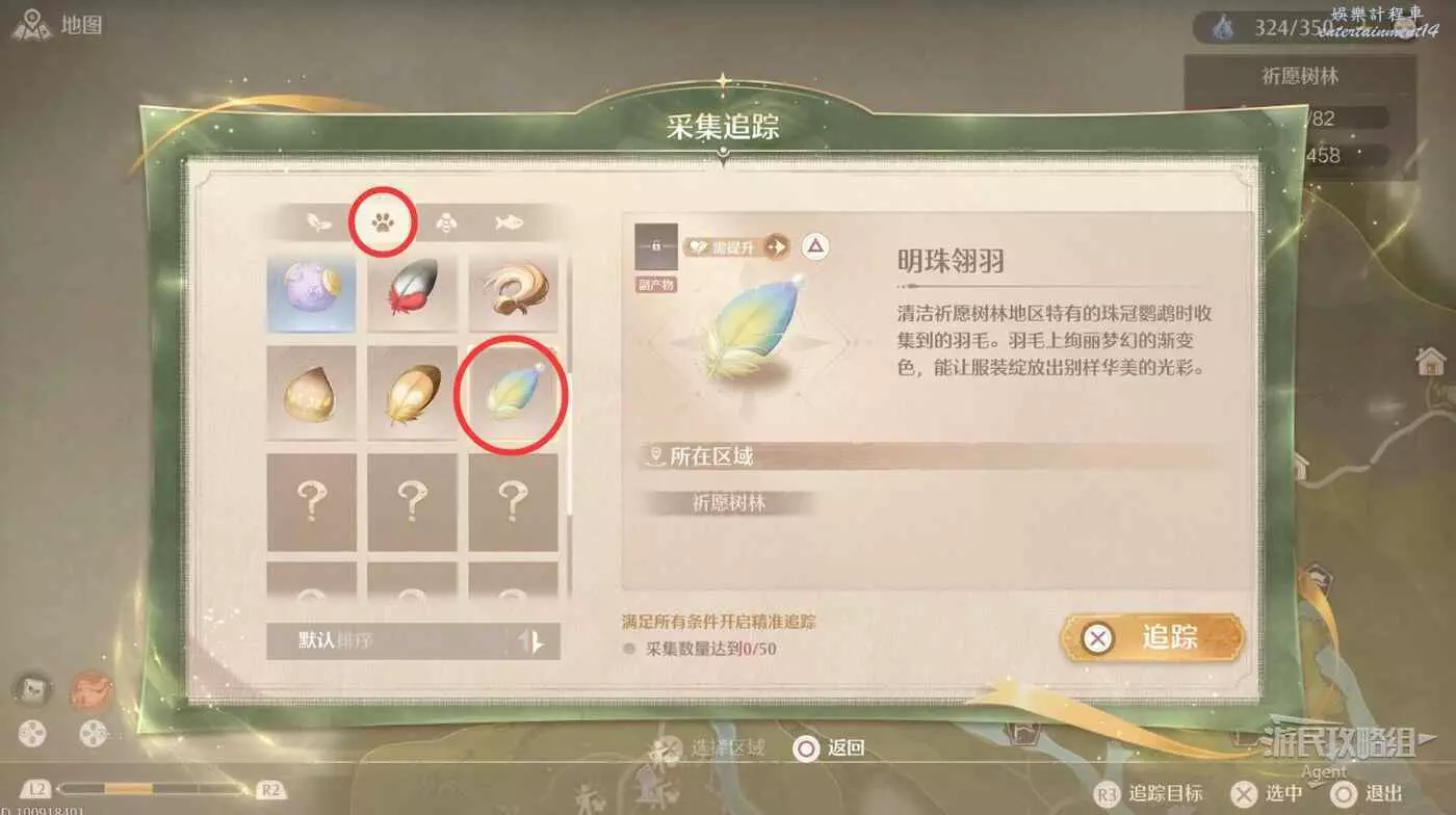 使用地圖左下角的追蹤功能,追蹤這兩個材料。