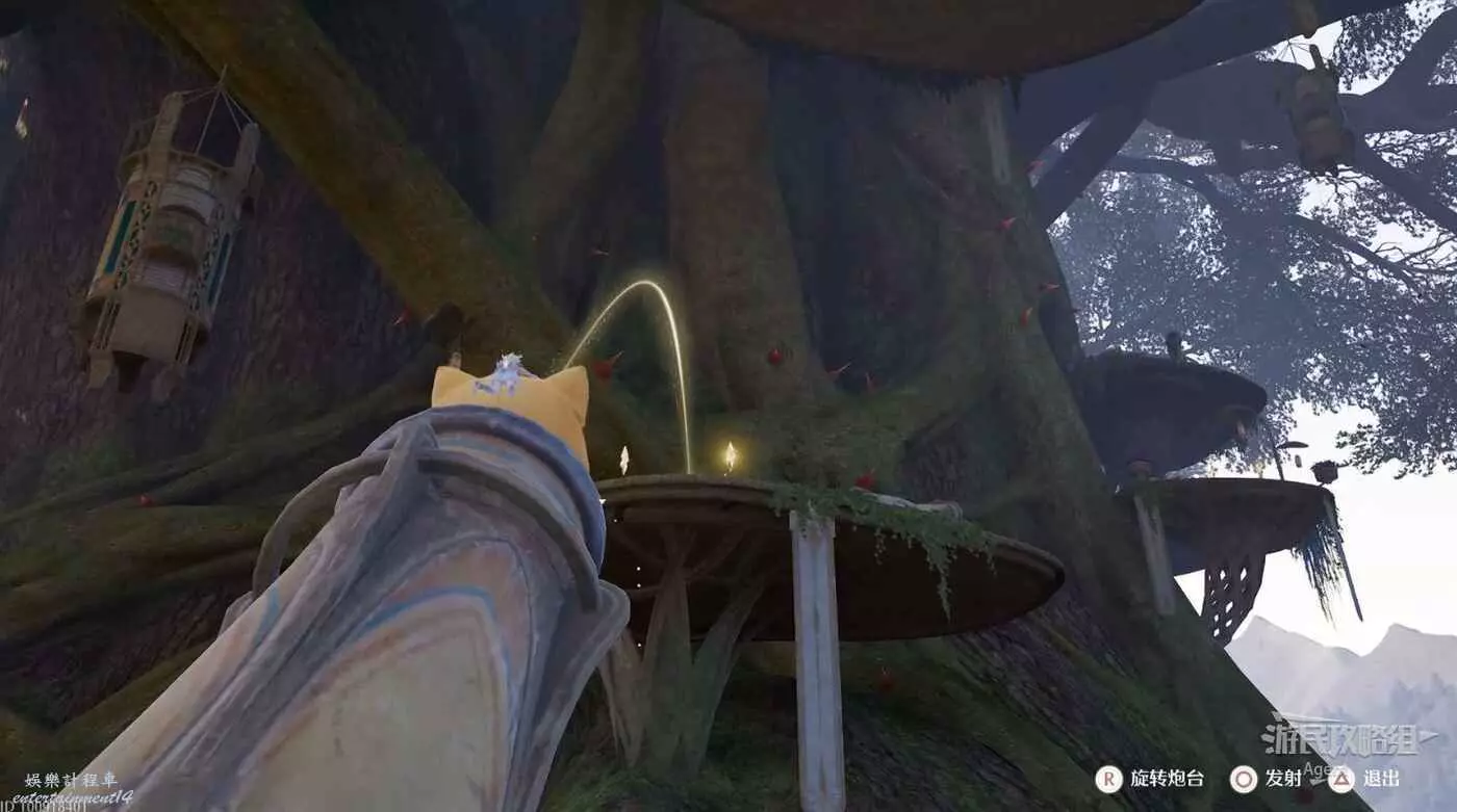 使用大炮和爬繩子,來到最高處的巨樹樹冠。