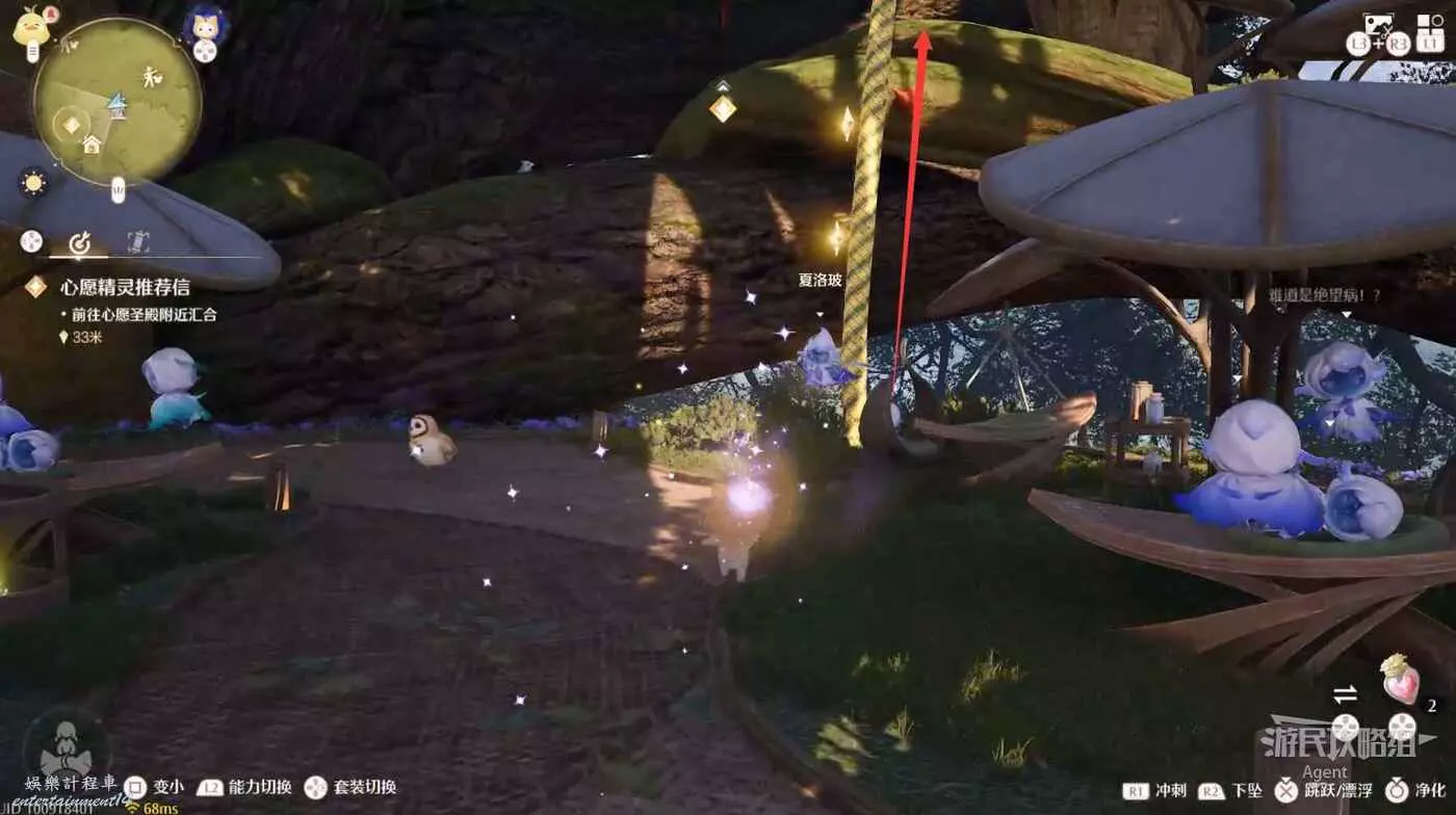 進入祈願樹林,一路和NPC對話,解鎖並製作變小能力套裝。