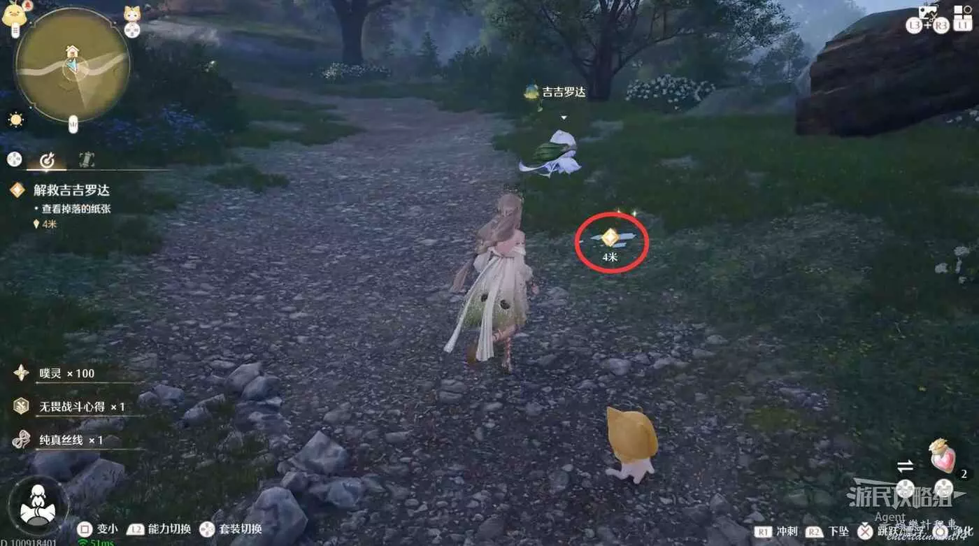 乘坐紙鶴來到目的地,拿到願望瓶。
