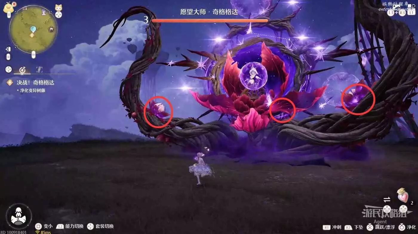BOSS有三隻爪子,每只爪子上都有一朵花,先攻擊這三朵花。