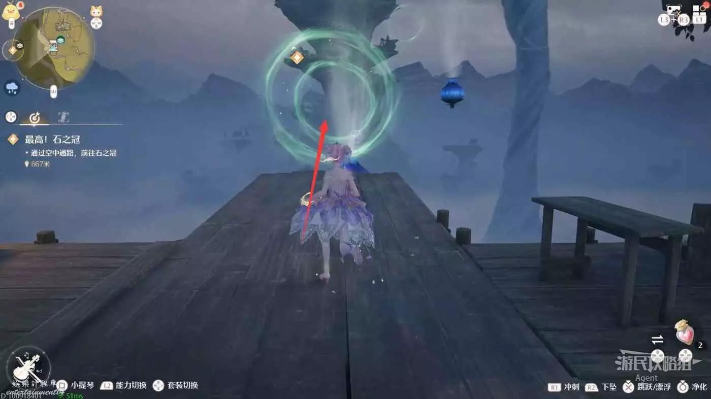 維持變小的狀態往前走,在變小的狀態下,風柱可以把你吹起來。
