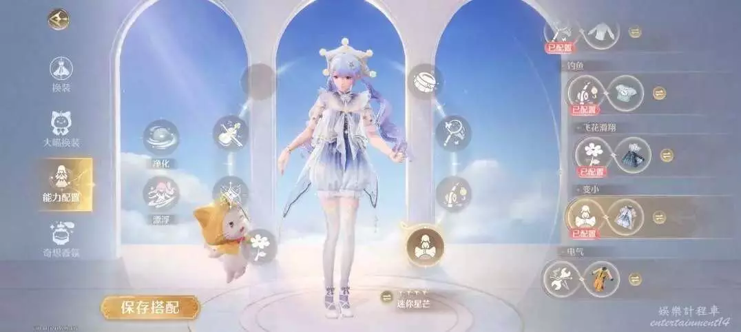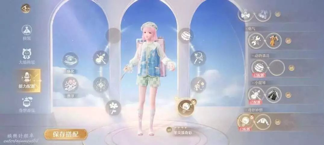 能力套裝有純淨之風、輕盈泡泡、琴弦之詩、重逢之約·盛裝、飛花的追憶、午後暖陽、悠然水畔、滿電行動、灰塵拜拜、筆尖漾奇彩、迷你星芒等共計11件套裝。