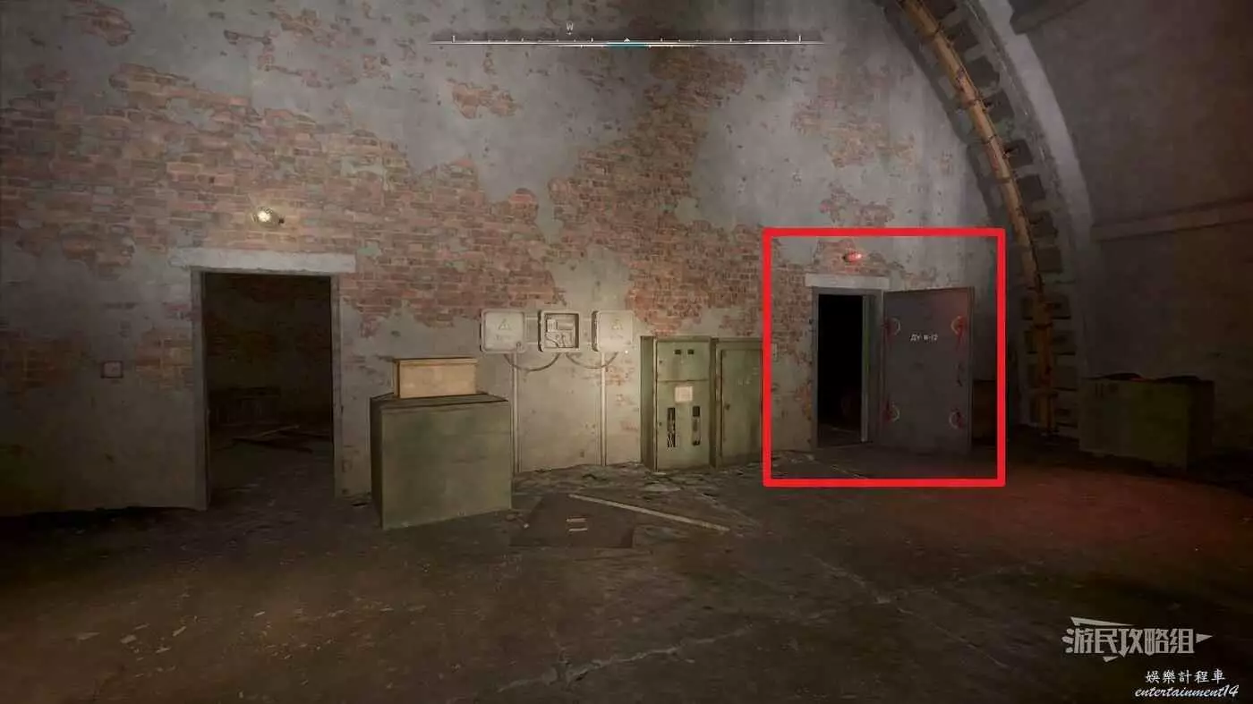 進入地下後,先不要往下走,進入下圖紅框所示的房間,拉動控制台上的拉杆。