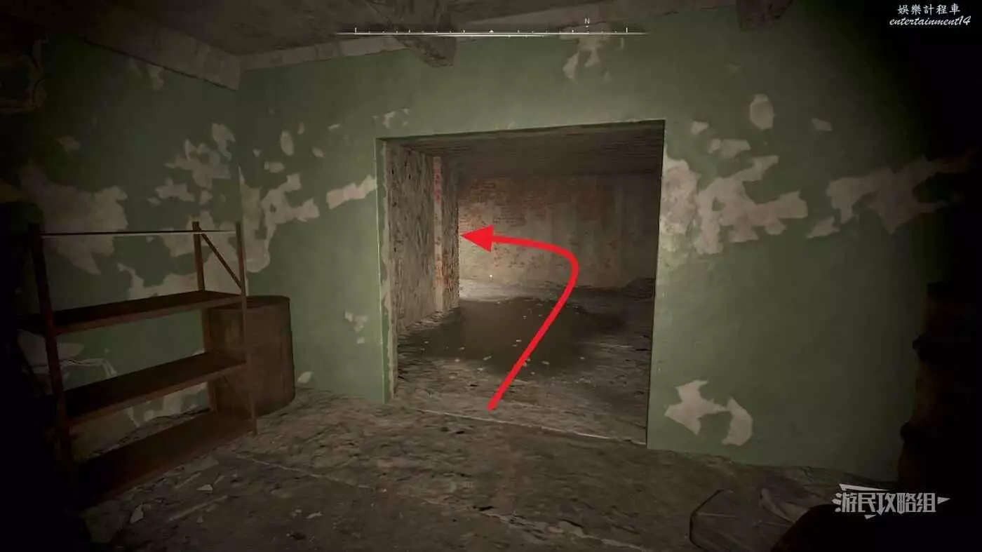 從防空工事的地上入口進入地下,旁邊有特異點小心岩漿,快速通過,同時避免輻射。