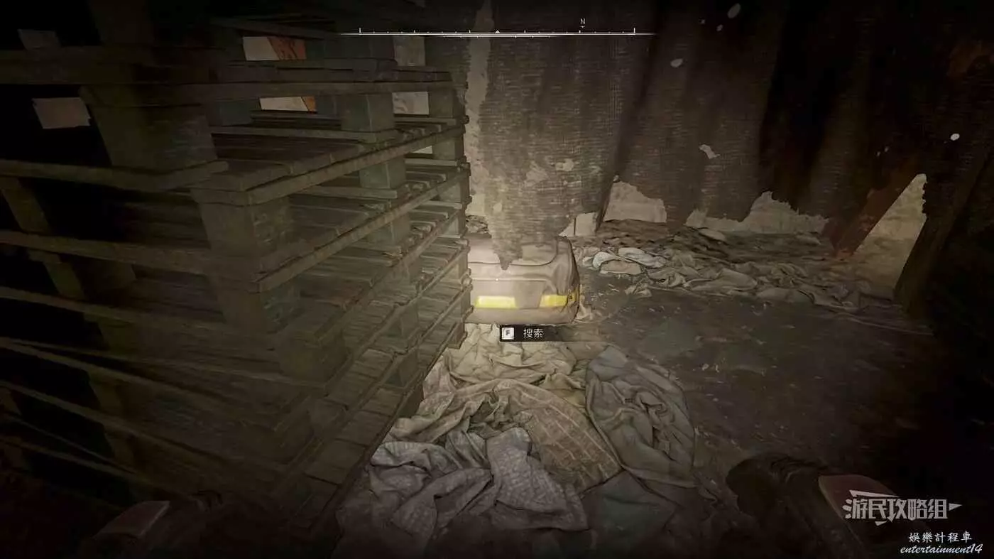 走鐵制樓梯來到二層,沿著二層的平台走到房間另一側,在一堆架子下方可以找到一個背包。