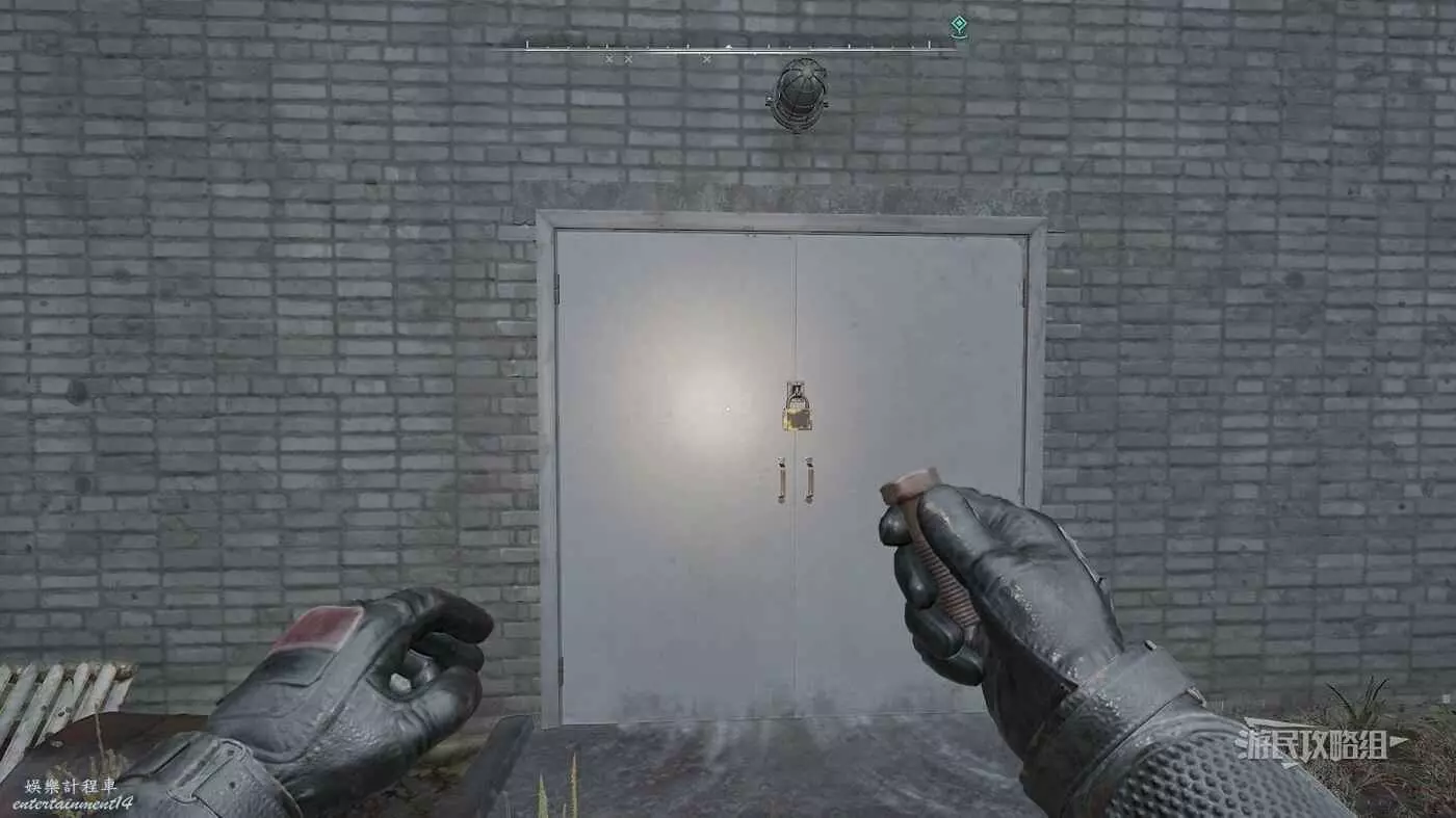 需要用螺栓清除引力特異點,前方門前還有尖刺注意避開。門上是帶鎖的,需要用槍把鎖打掉才能開門。