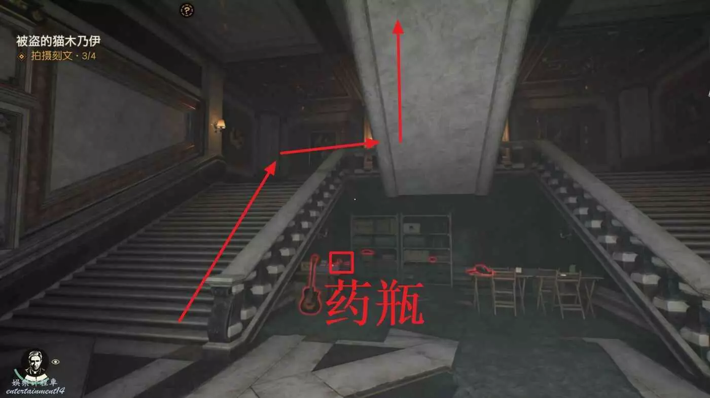 使徒宮一樓樓梯口可以拿到一個藥瓶,隨後沿著樓梯往上走。