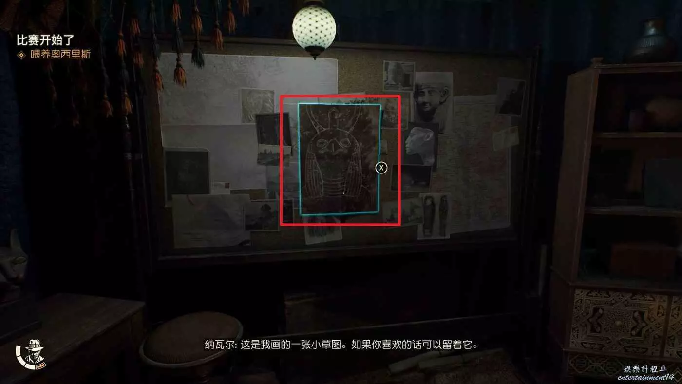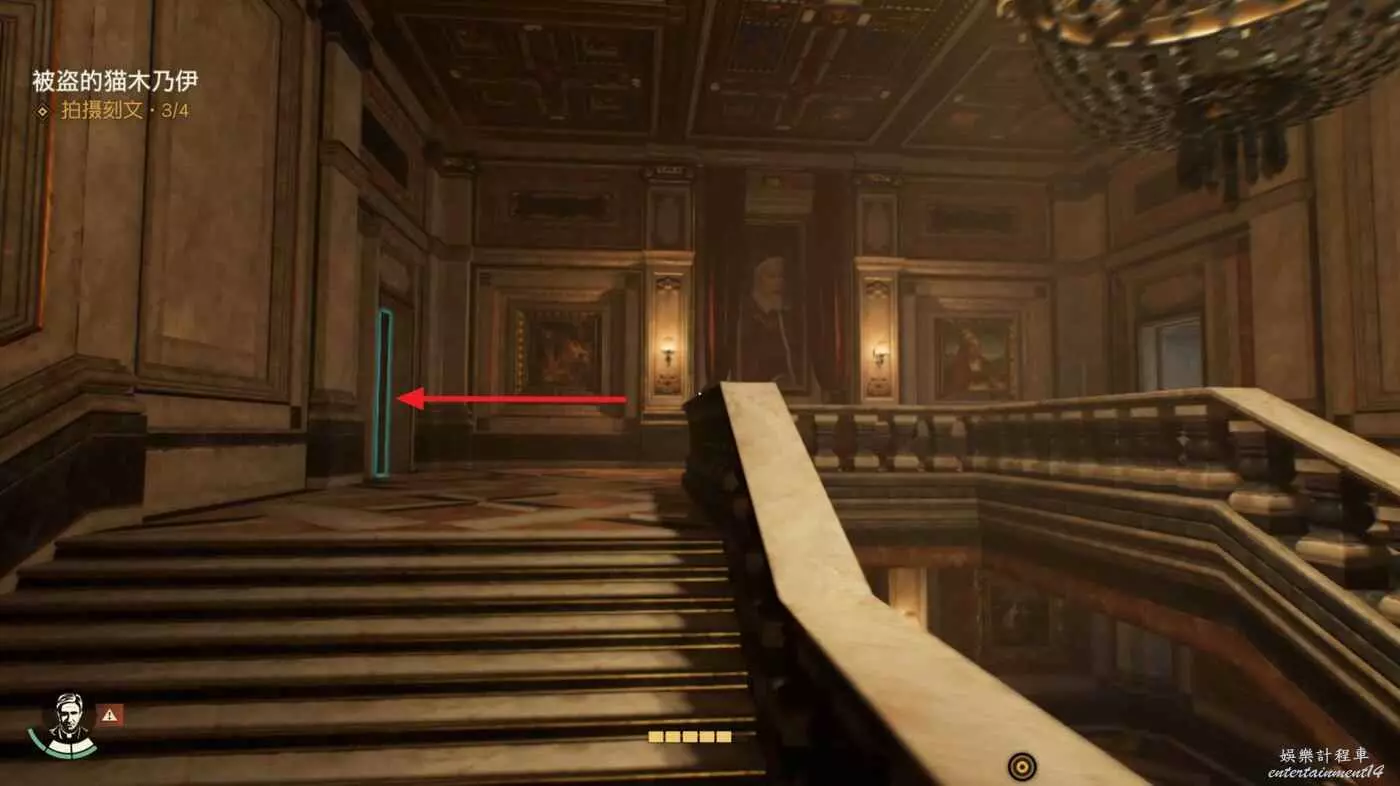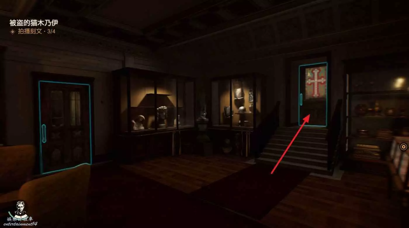 大路右側照片牆可以拾取【尋貓啟示】並接取謎團【自由的靈魂】。