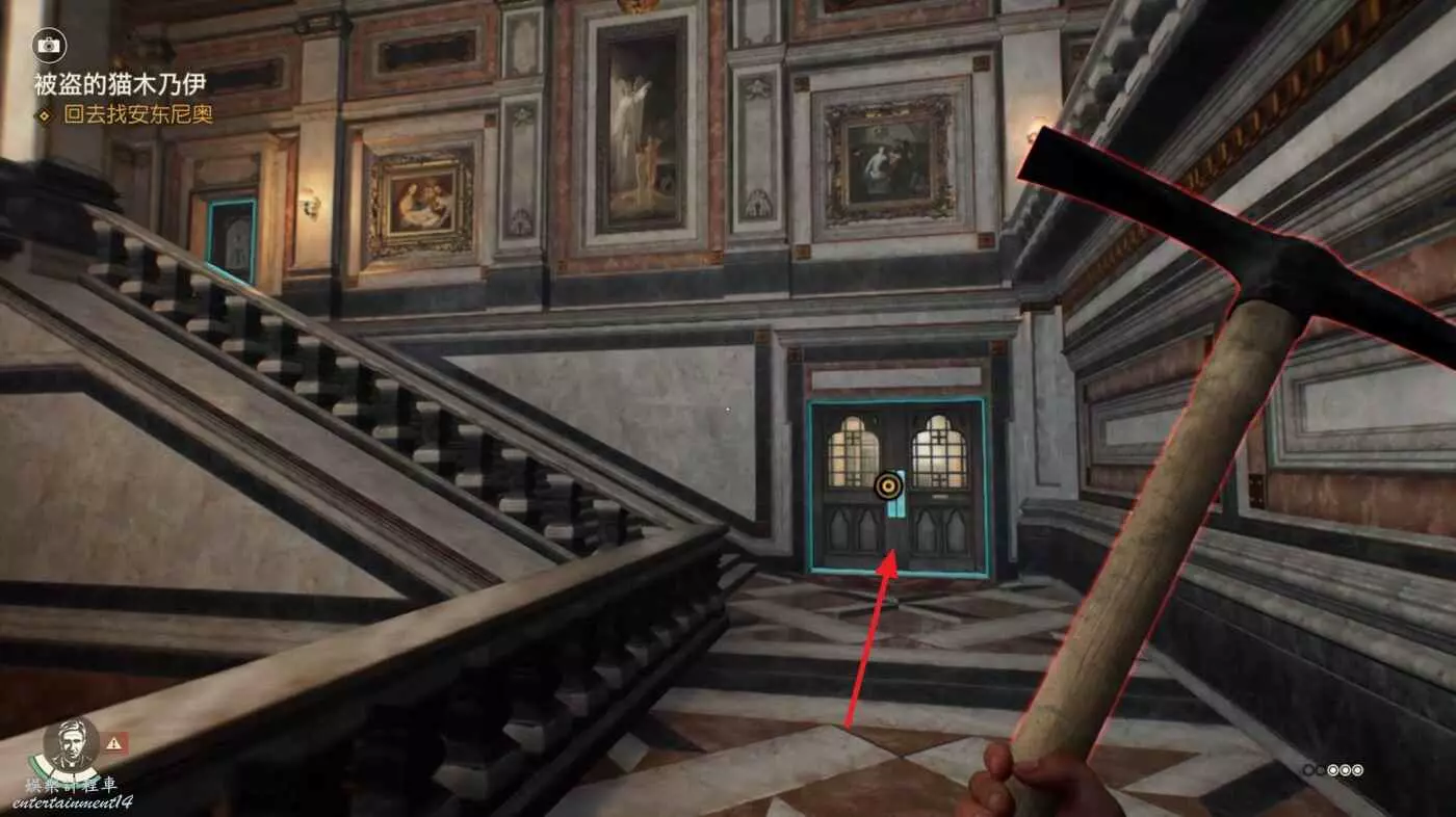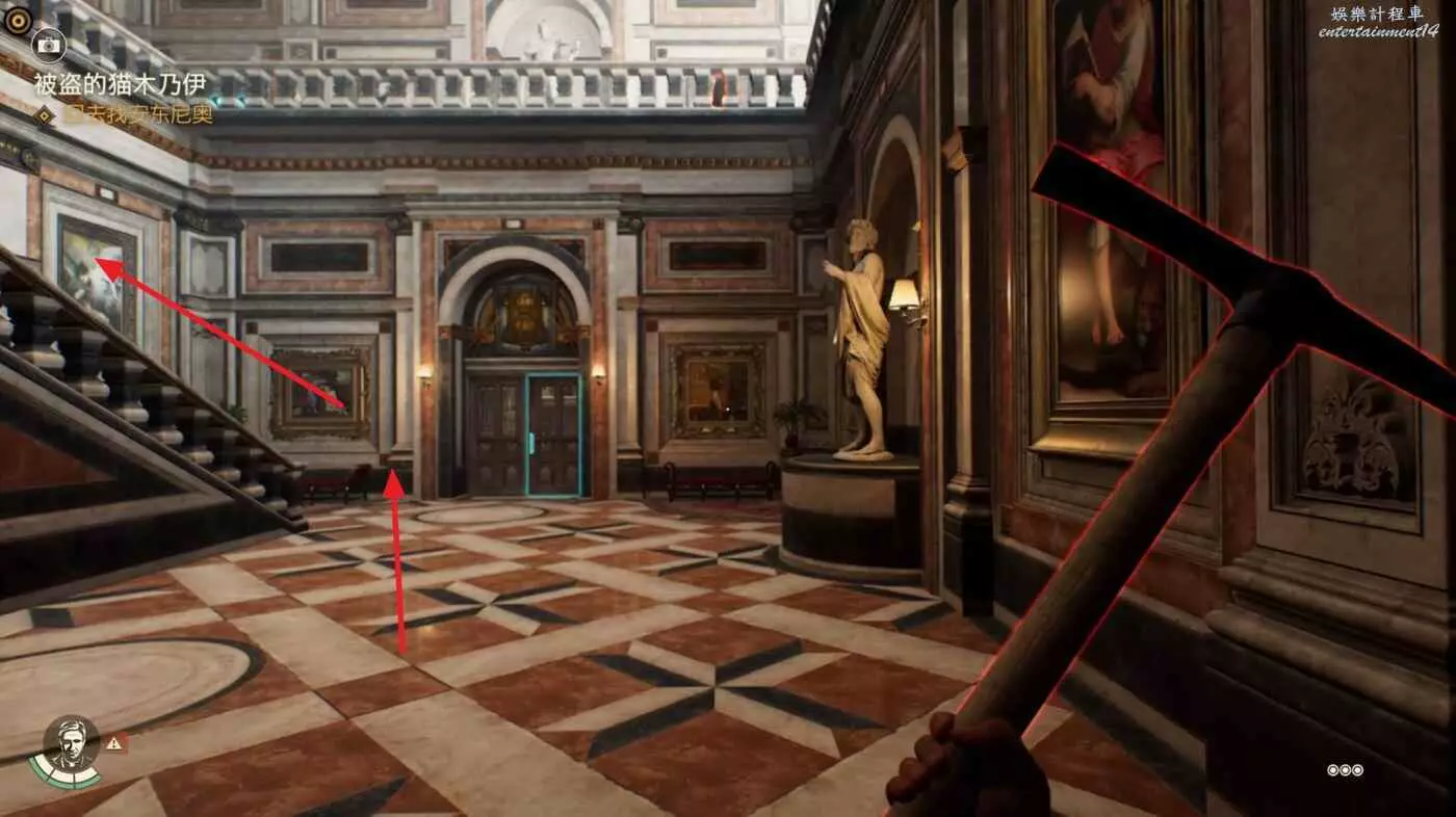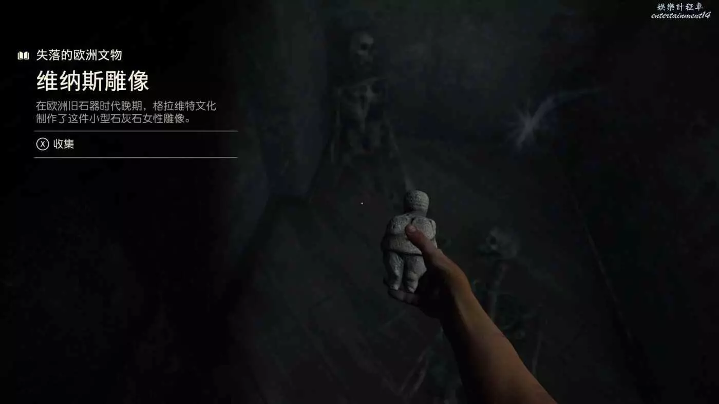 使用錘子等武器打碎左邊的牆,裡面可以拿到失落的歐洲文物【維納斯雕像】