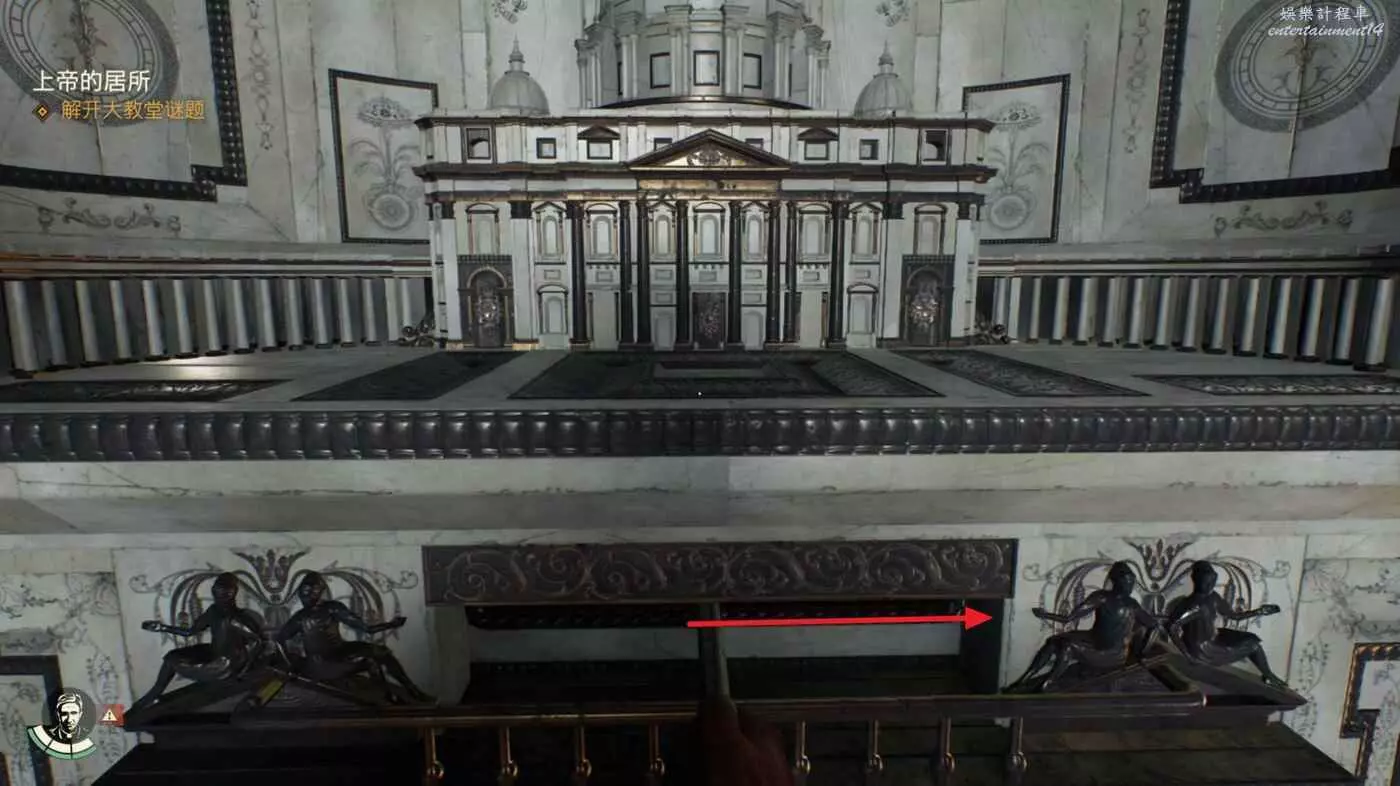 傳送到【使徒宮】上層解開【上帝的居所】謎題的位置,吉娜會在前方的雙開門處等我們。