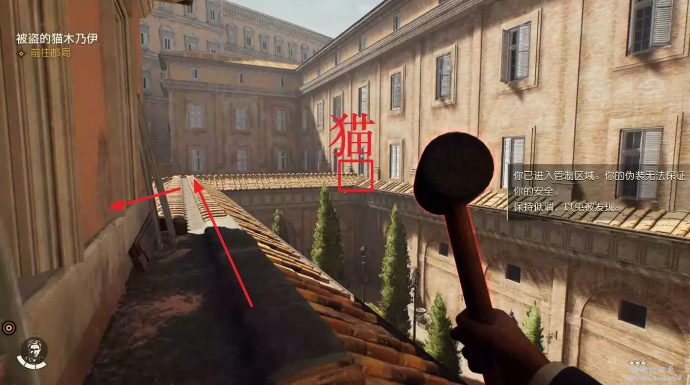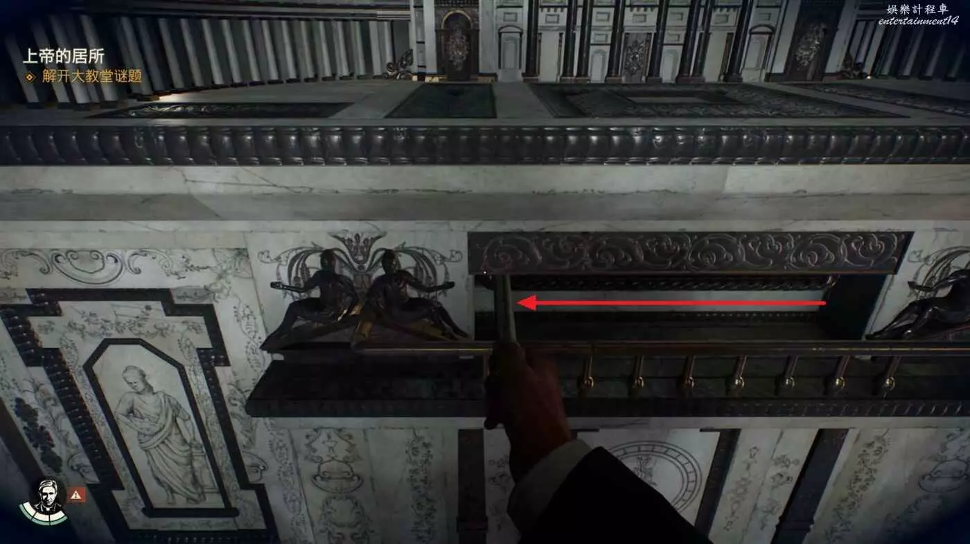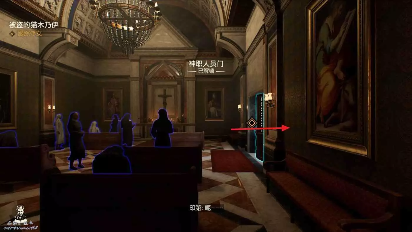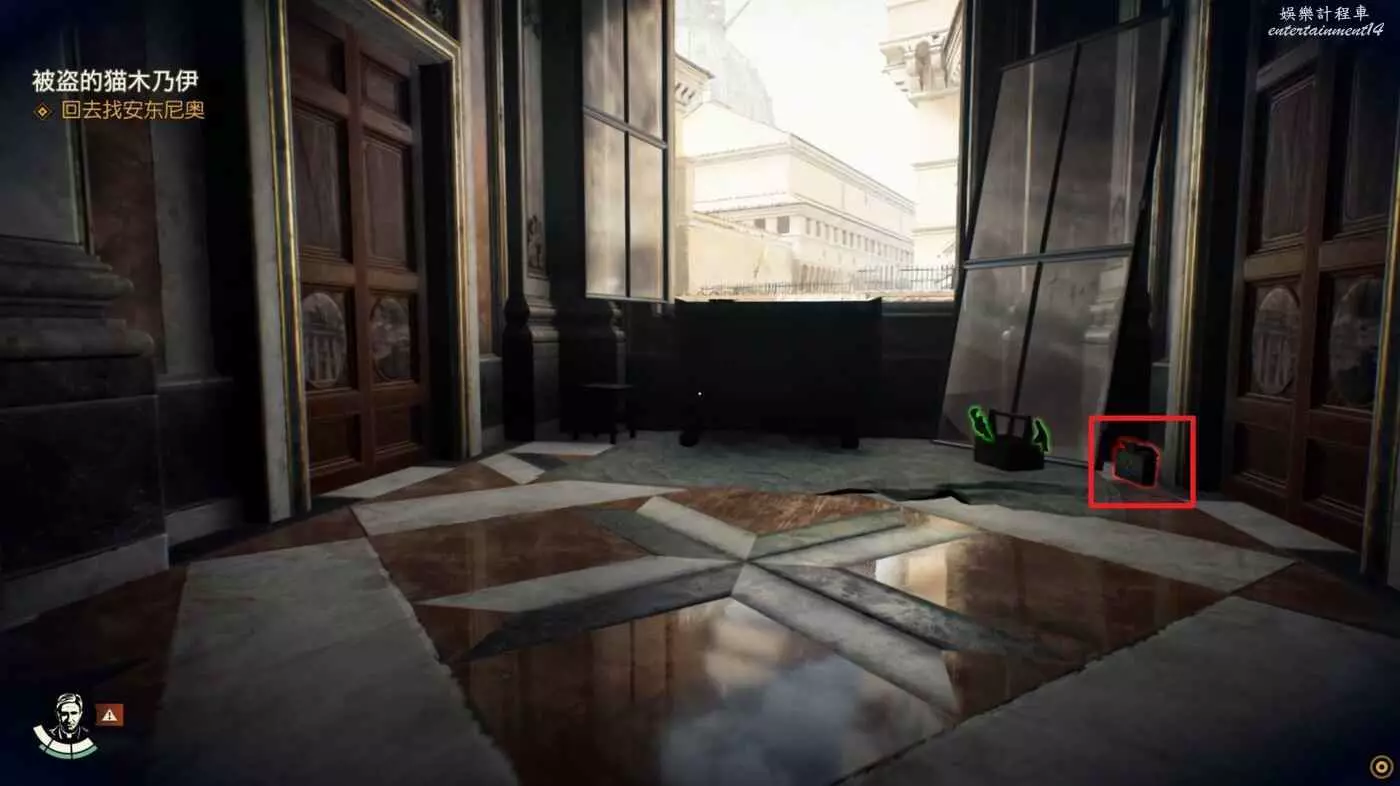 將審問的敵人幹掉,劇情中能獲得一把鑰匙,從吉娜的對話中得知還有一份筆記提示目前位於西斯廷禮拜堂處。