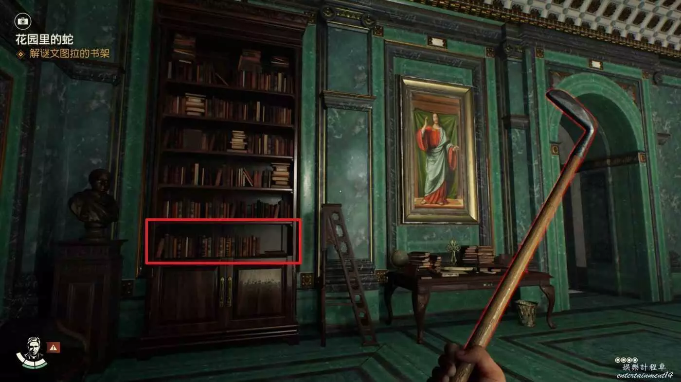 拾取右側出現的謎題筆記【墨索里尼的來信】並完成謎團【花園裡的蛇】。