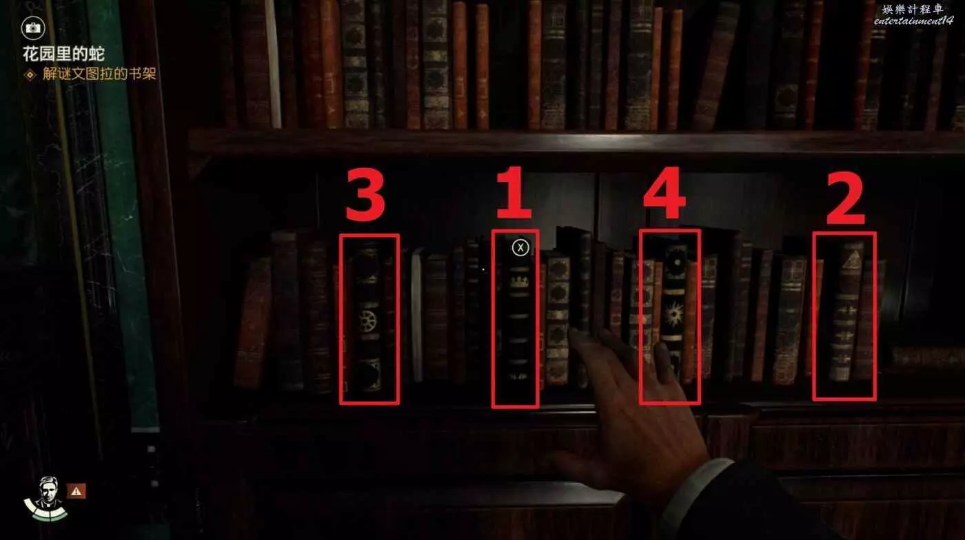 按照下圖所示順序依次與四本書互動即可解開機關。