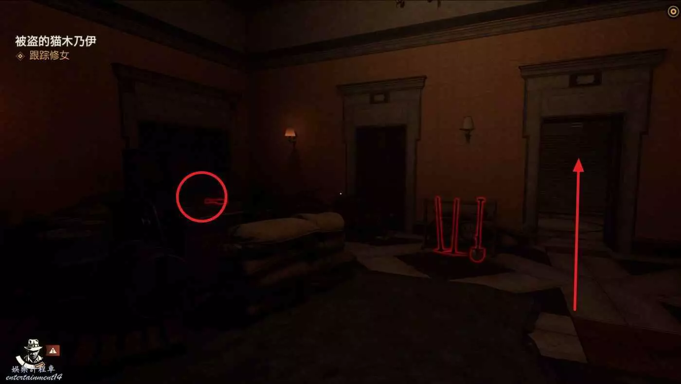 二樓房間右側桌子上可以拾取【尼科萊蒂的信】接取新謎團【秘密中的秘密】。