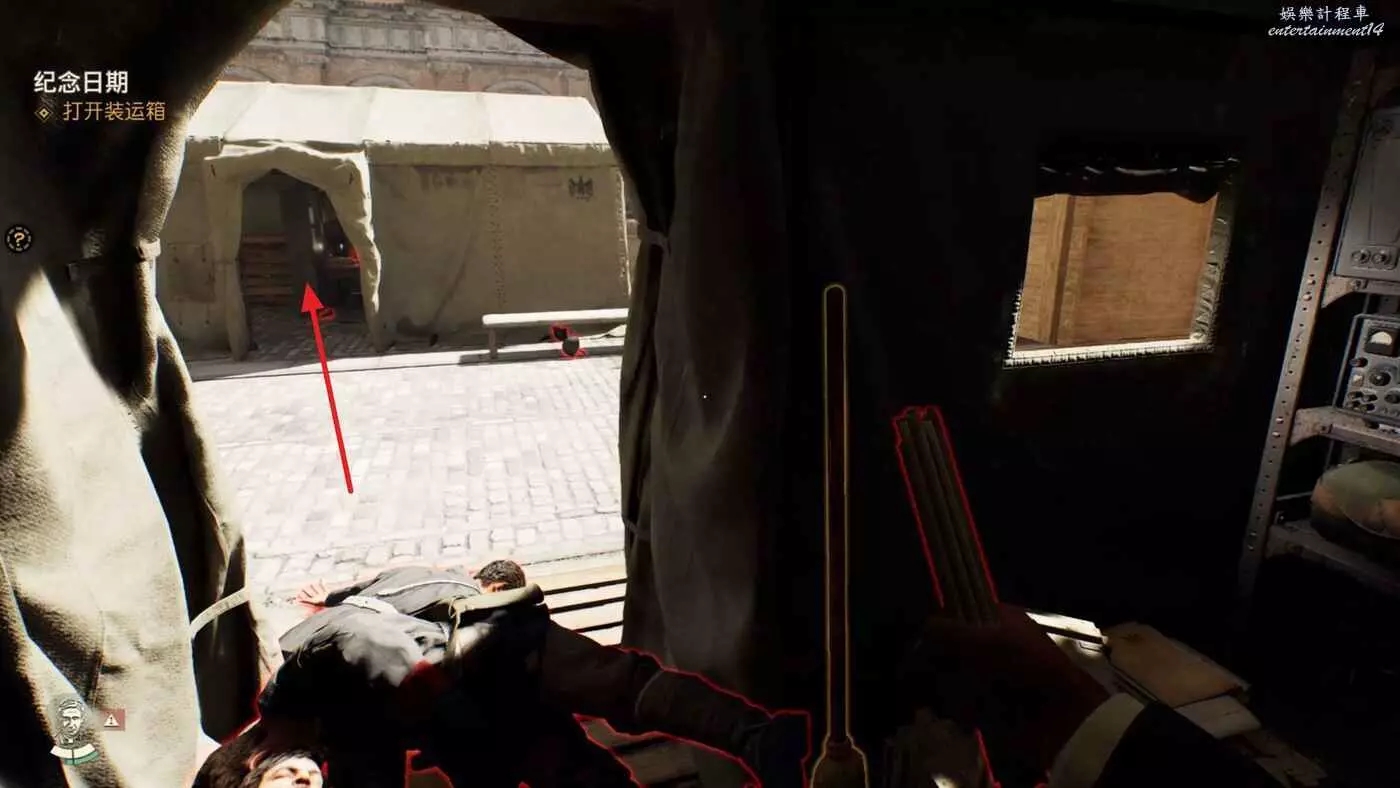 這個帳篷裡可以拿到冒險書籍【搏鬥家2】,左邊抽屜裡可以拿到不少錢,抽屜上方的桌子上可以拿到筆記【運輸報告】,開啟新謎團【紀念日期】。