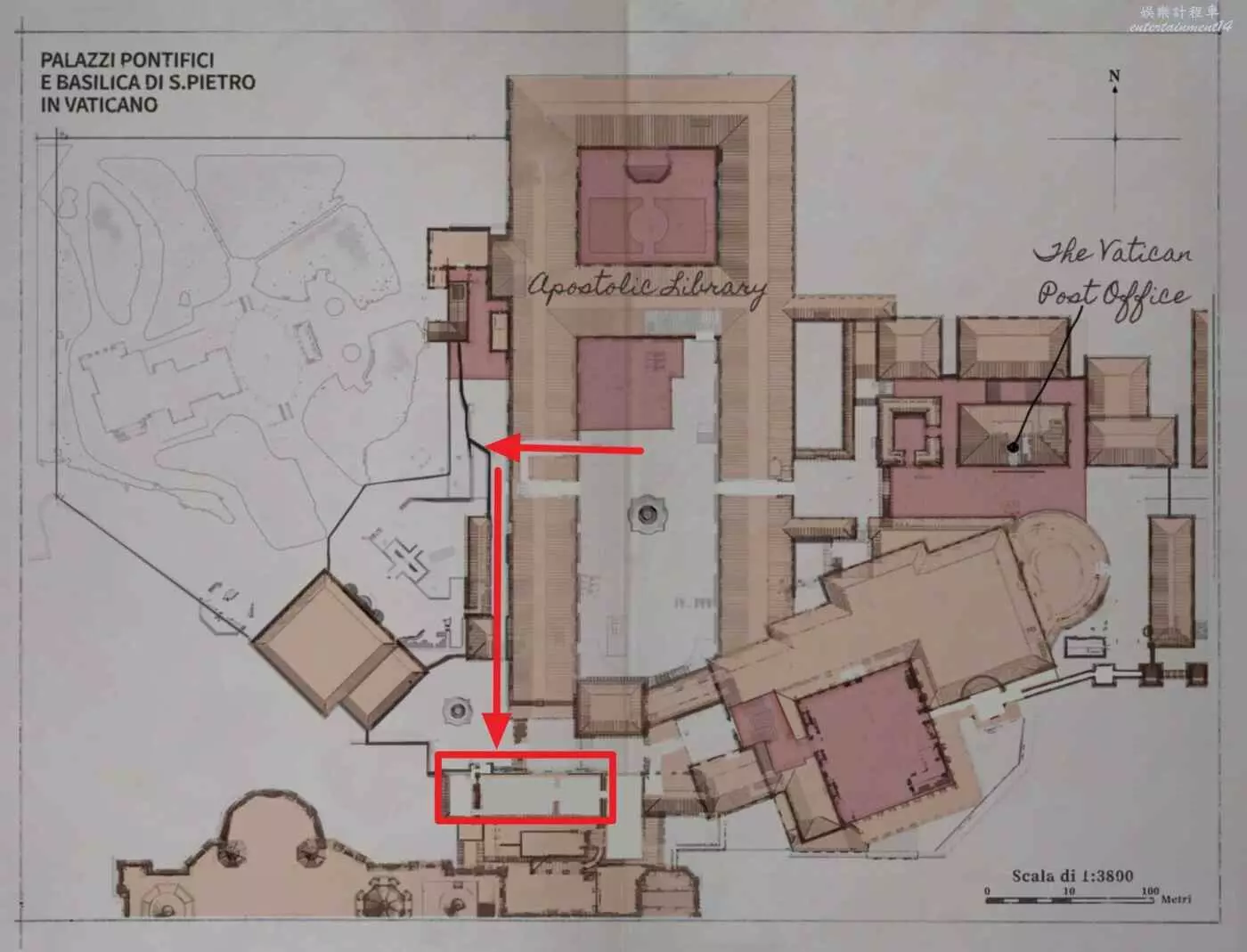 沿著下圖路線,從地圖左側進入建築【西斯廷禮拜堂】。