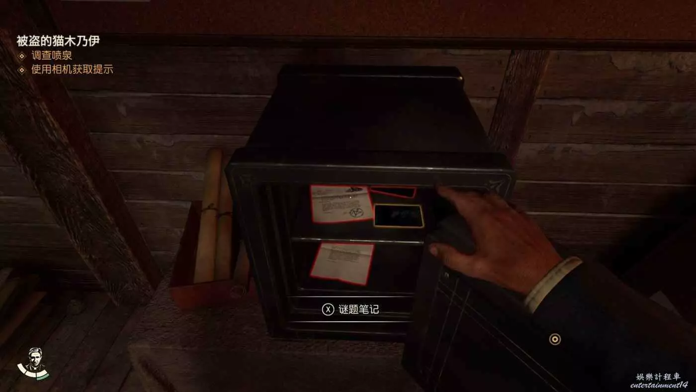 通過密碼【5873】打開保險櫃,裡面可以獲得筆記【錫瓦照片】、【小亨利報告】、【辦公室照片】、【老亨利報告】完成謎團【父與子】。