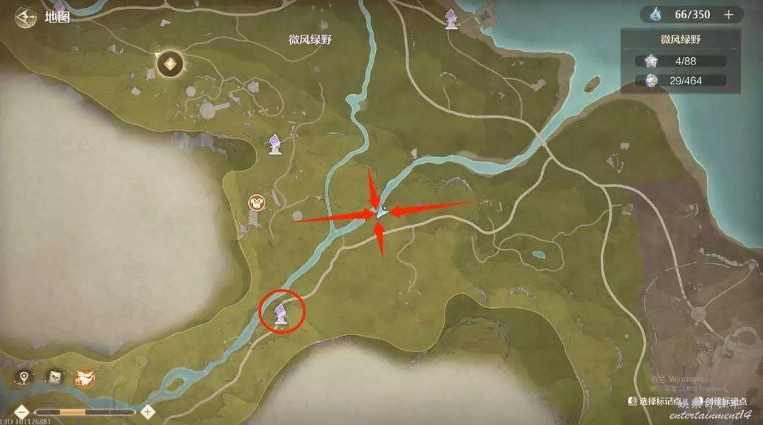 微風綠野浮絮巨鷗具體位置-如圖所示