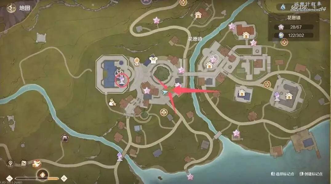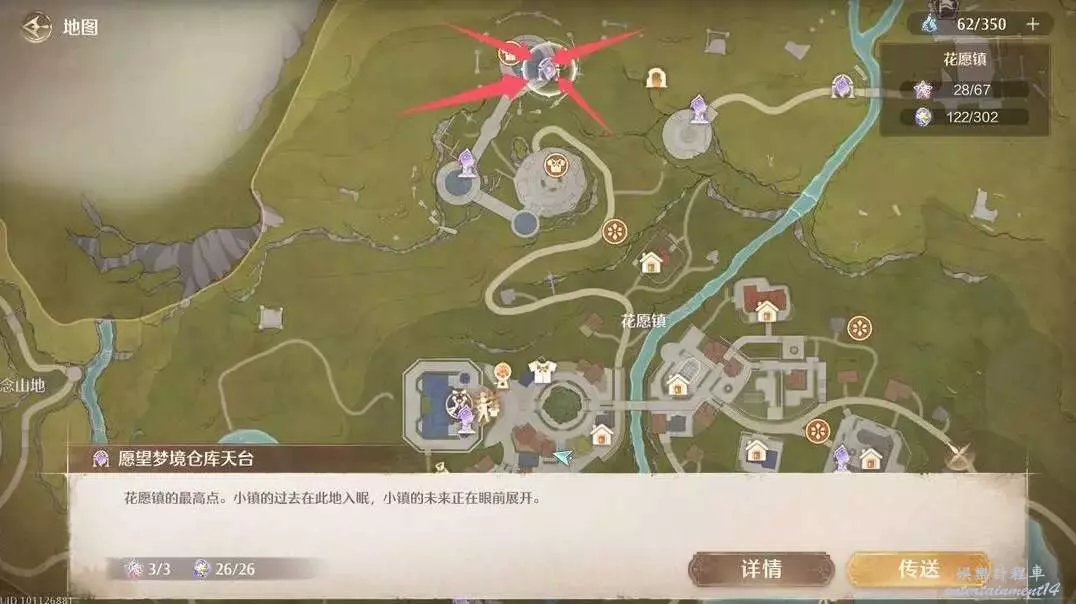 地圖中願望夢境倉庫天台所在點位-如圖所示