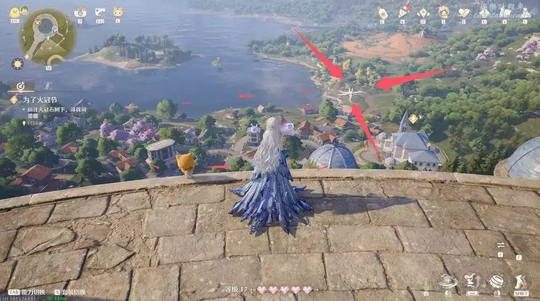 千紙鶴會圍著花園鎮漂浮,等飄過來直接上去就行