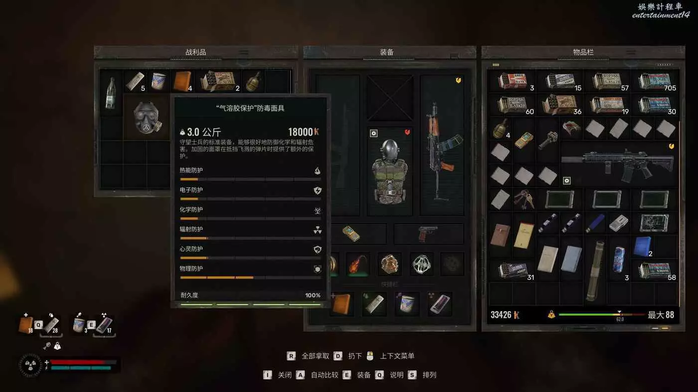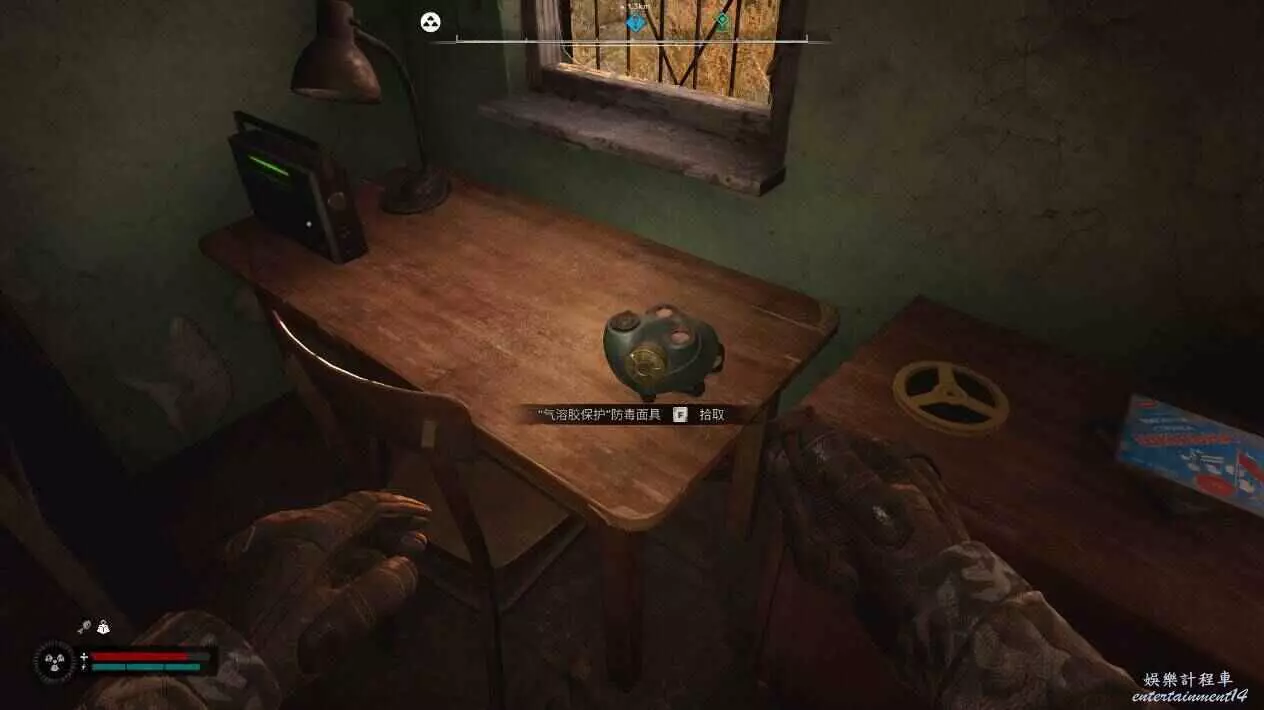 *旁邊收音機桌子上還有“熱熔膠保護”防毒面具別忘記拿。