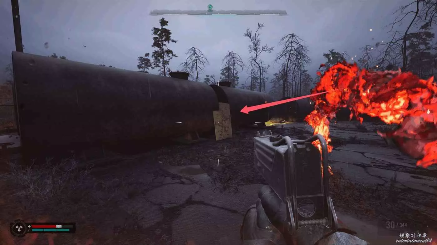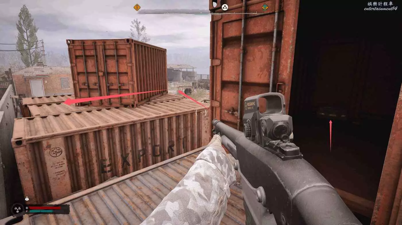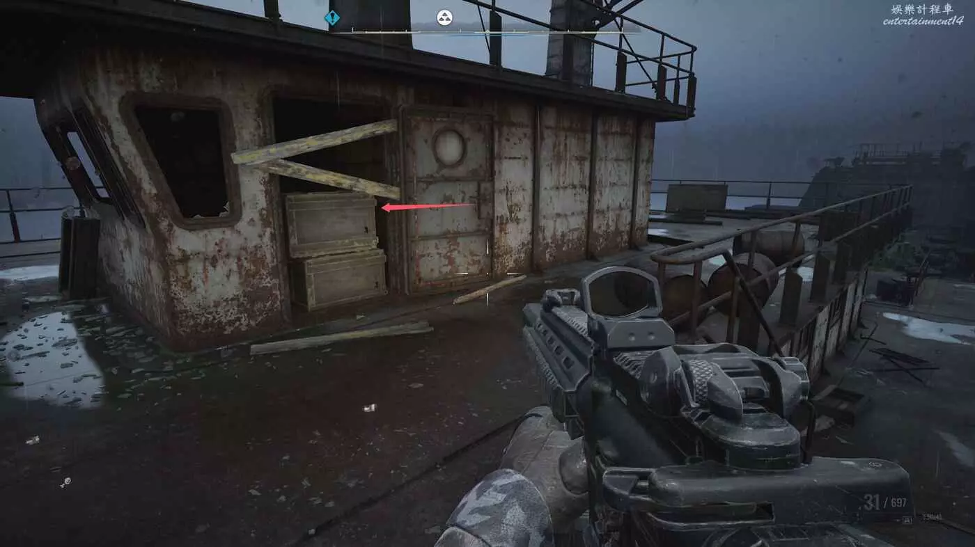不要著急走,來到這個油罐區,這塊板子後面還有個彈匣,板子可以用槍打飛。