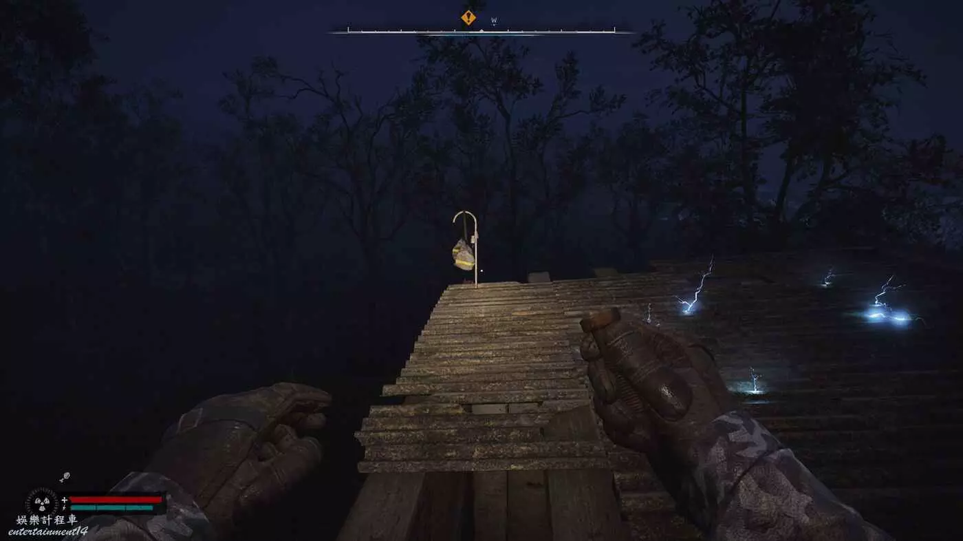 出門要先去戰利品箱子正對面的發電機處互動,推薦走上面,下面有一些陷阱。