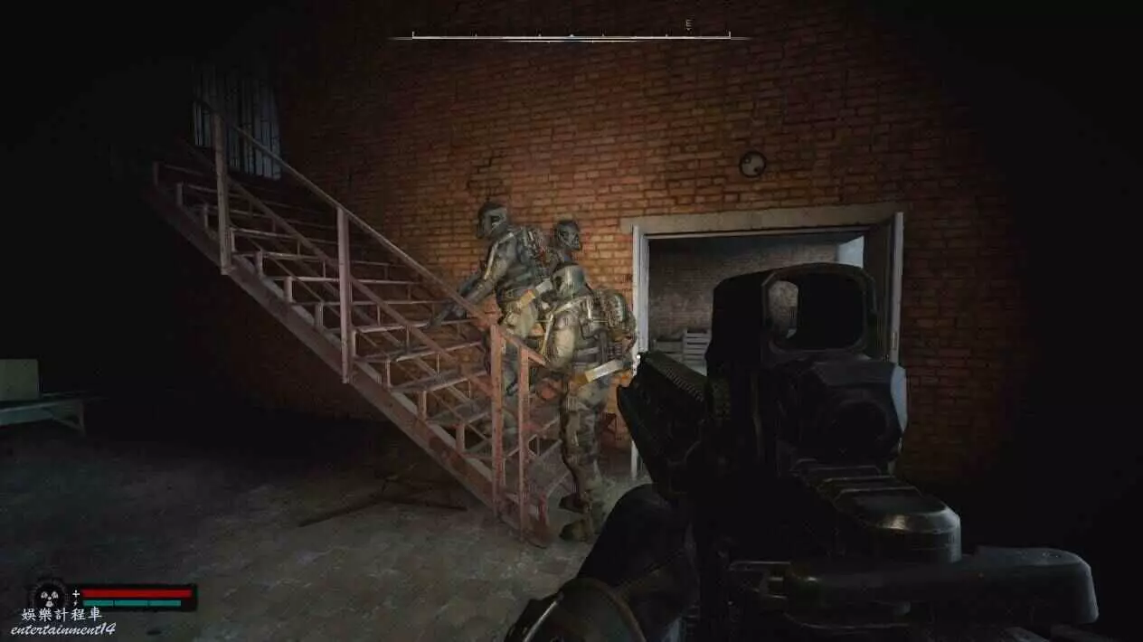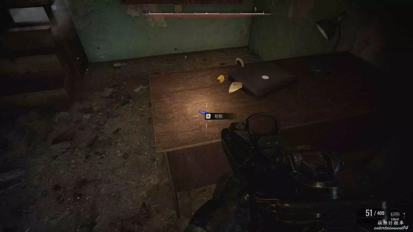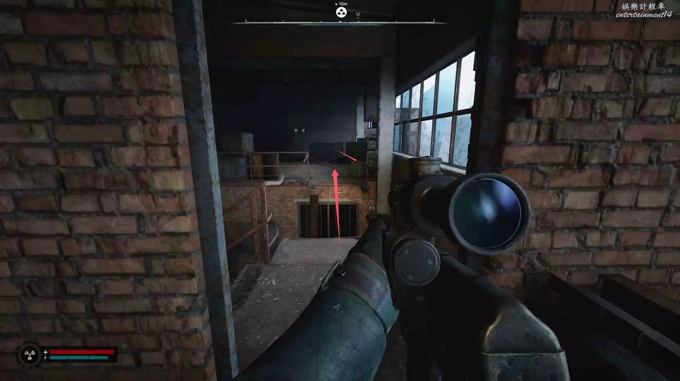 *在這個點位還有個小支線,擊殺所有敵人後,搜身會找到留言說鑰匙在房頂,來到倉庫外面的樓梯爬上去後,穿過電網,在最邊上有個包,裡面鑰匙和一個*雙聯彈匣。