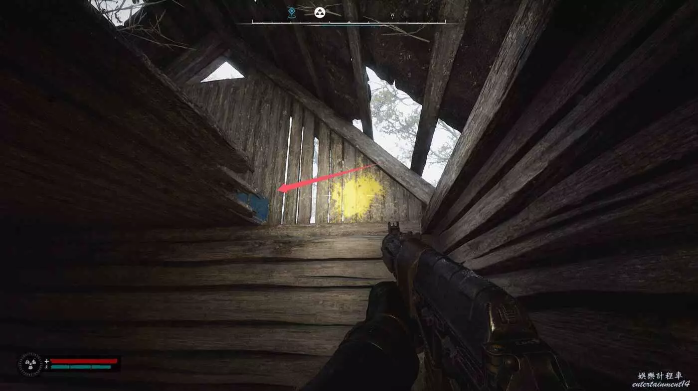 目的地房子裡面,有塊黃色油漆提示,就在上面
