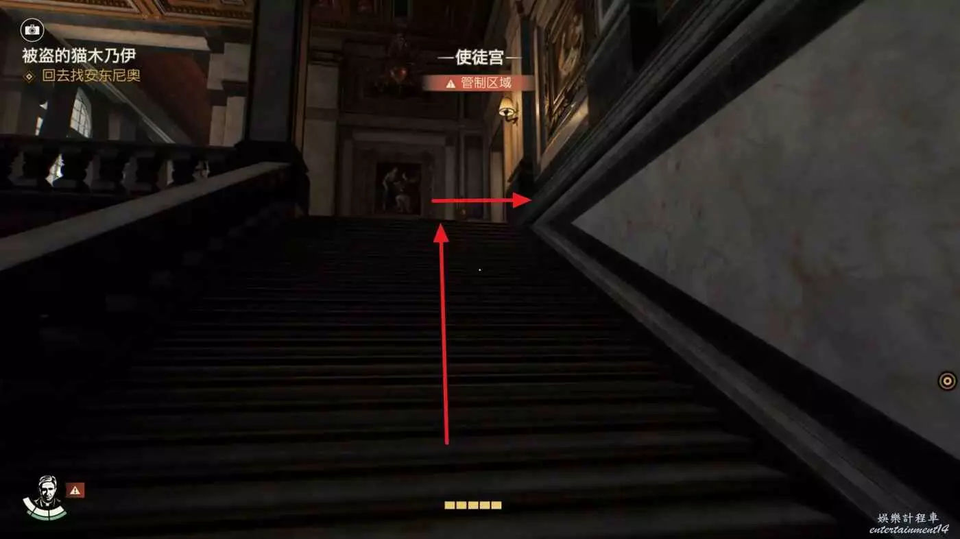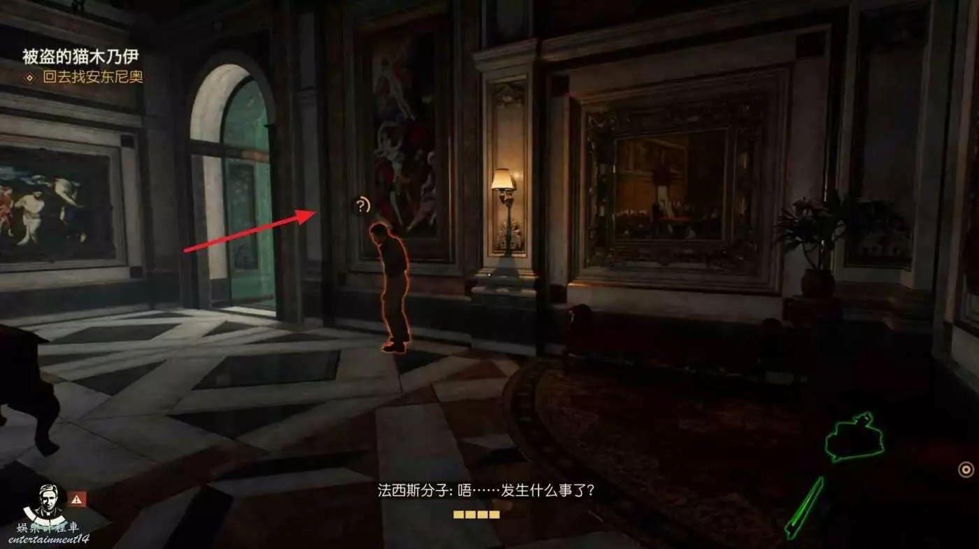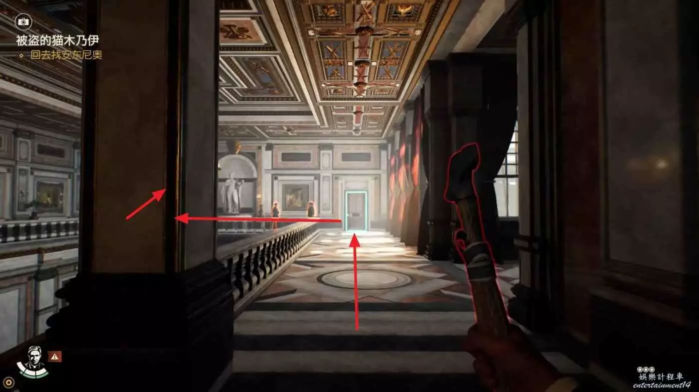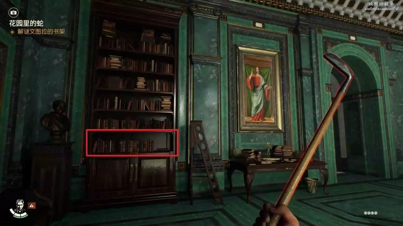 拾取右側出現的謎題筆記【墨索里尼的來信】並完成謎團【花園裡的蛇】。