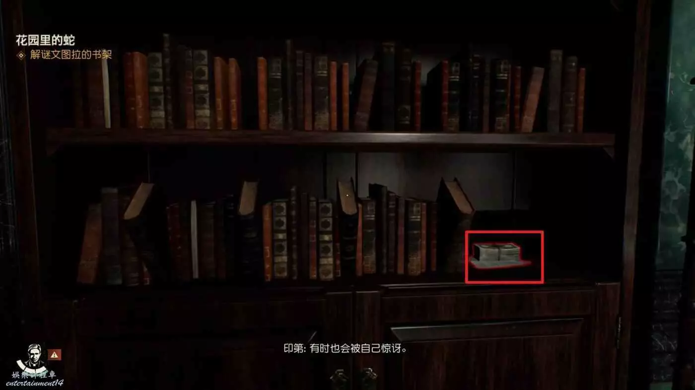 陽台旁的桌子上可以獲得謎題筆記【書架筆記】,收集開啟新謎團【花園裡的蛇】。