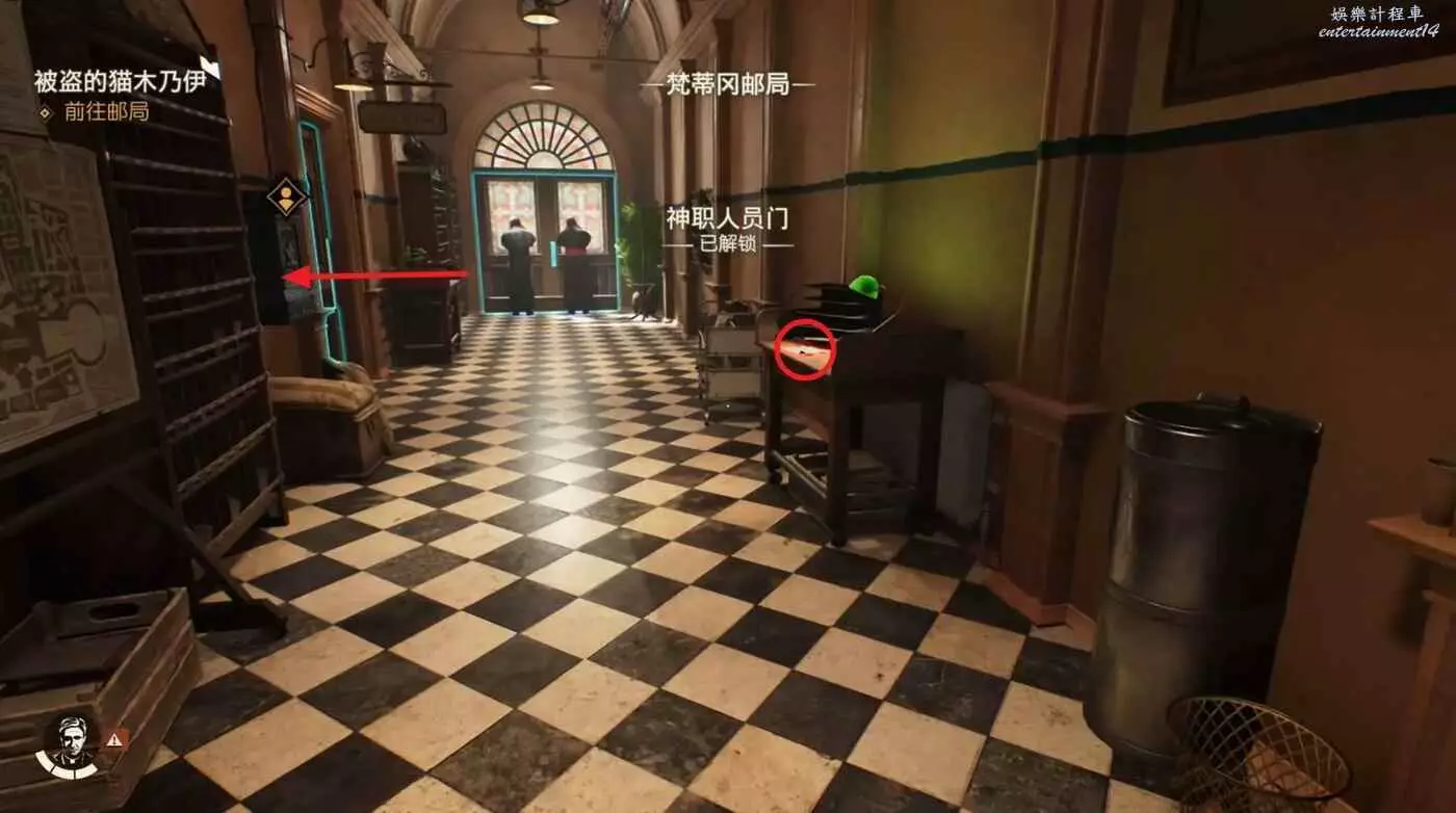 使用牧師鑰匙打開右邊的門,來到郵局走廊。