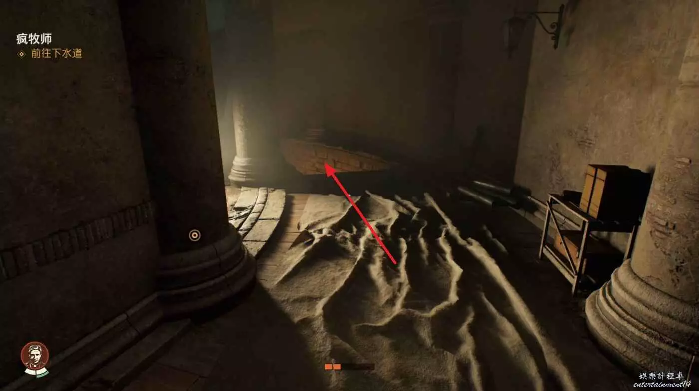 建築入口右側的房間有不少錢能拿,還有一個暗道,後面離開時會用到。