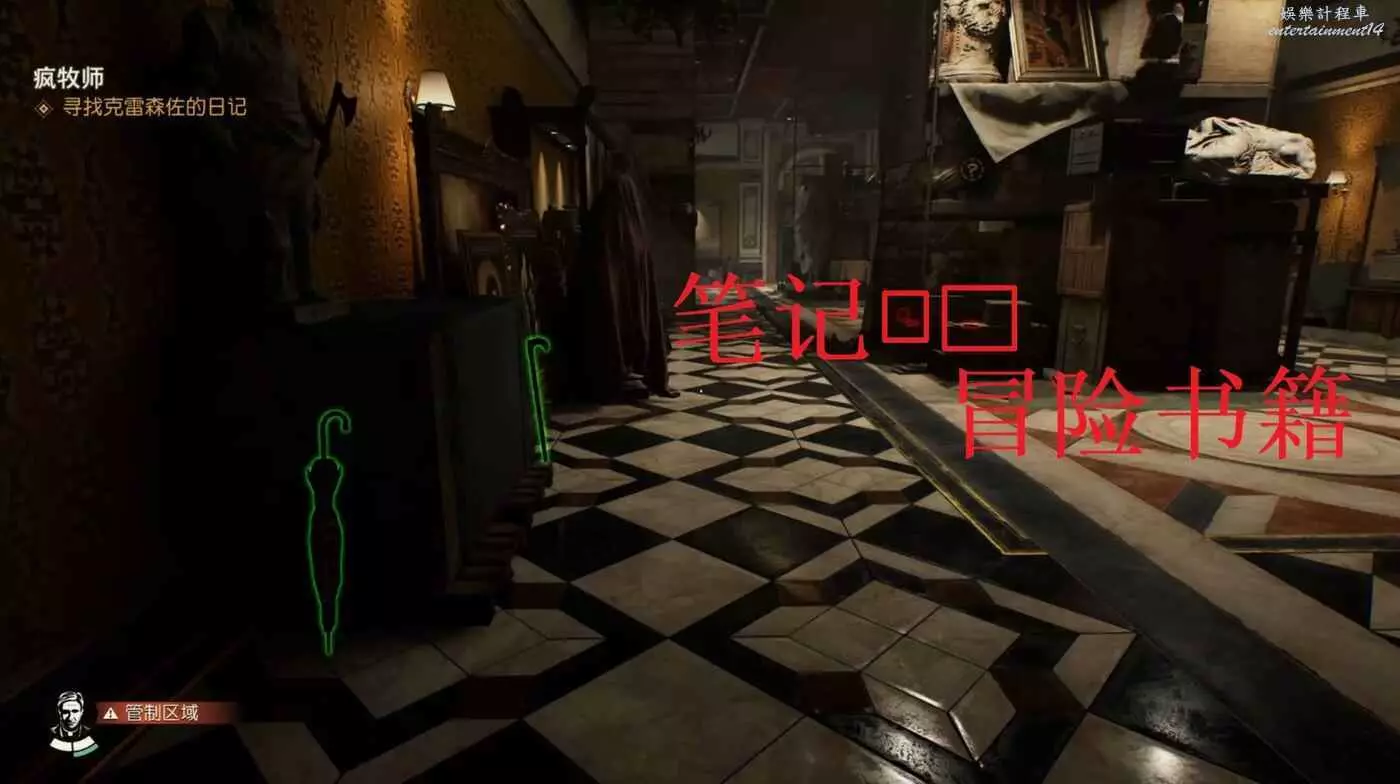 完事回到使徒圖書館的入口,這裡有一個新筆記【違禁品清單】可以拿,也是這個任務最後一個筆記。