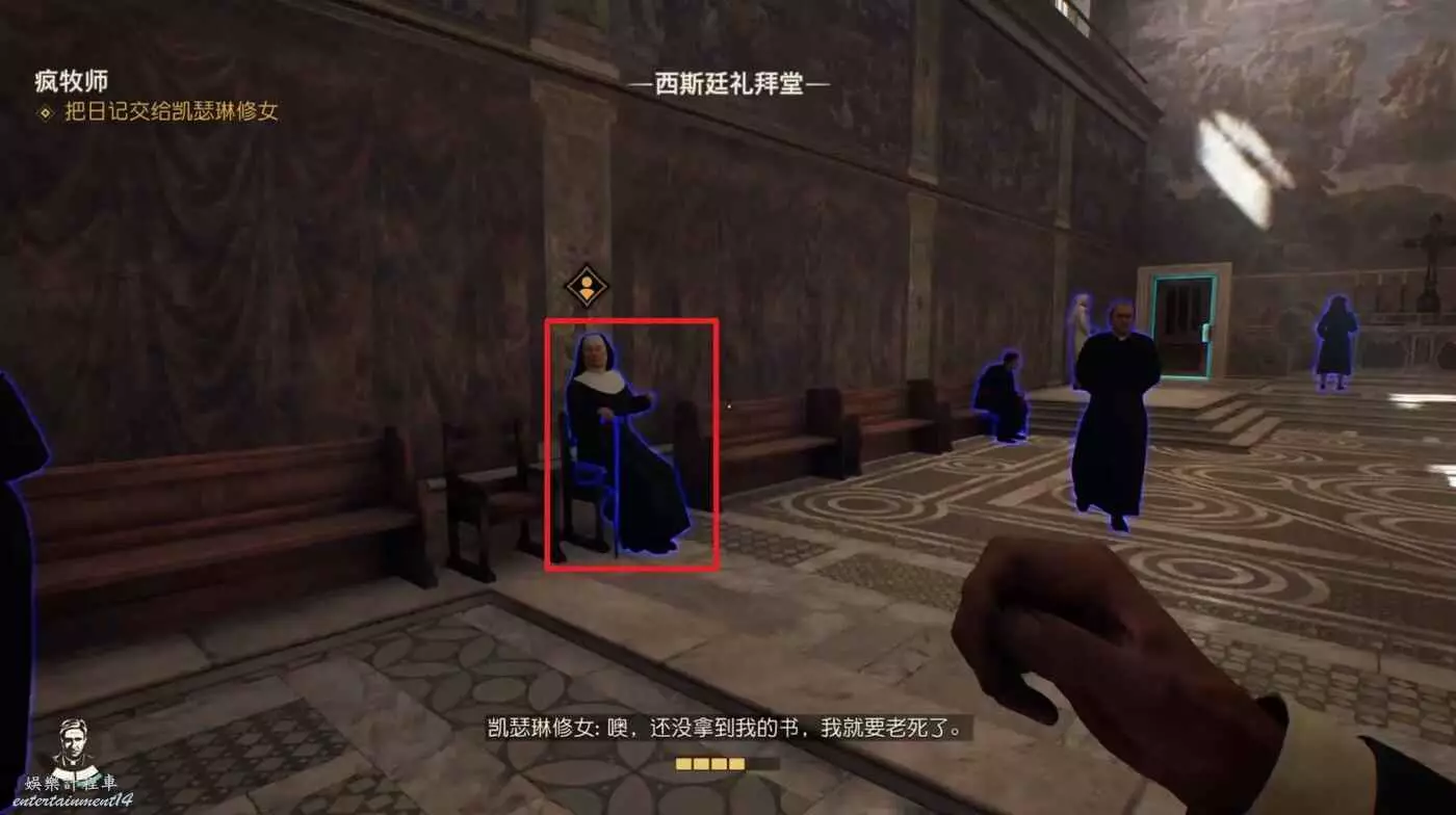 來到西斯廷禮拜堂找吉娜,跟瘋牧師的那個老修女在一個位置,過去與其對話開啟任務。