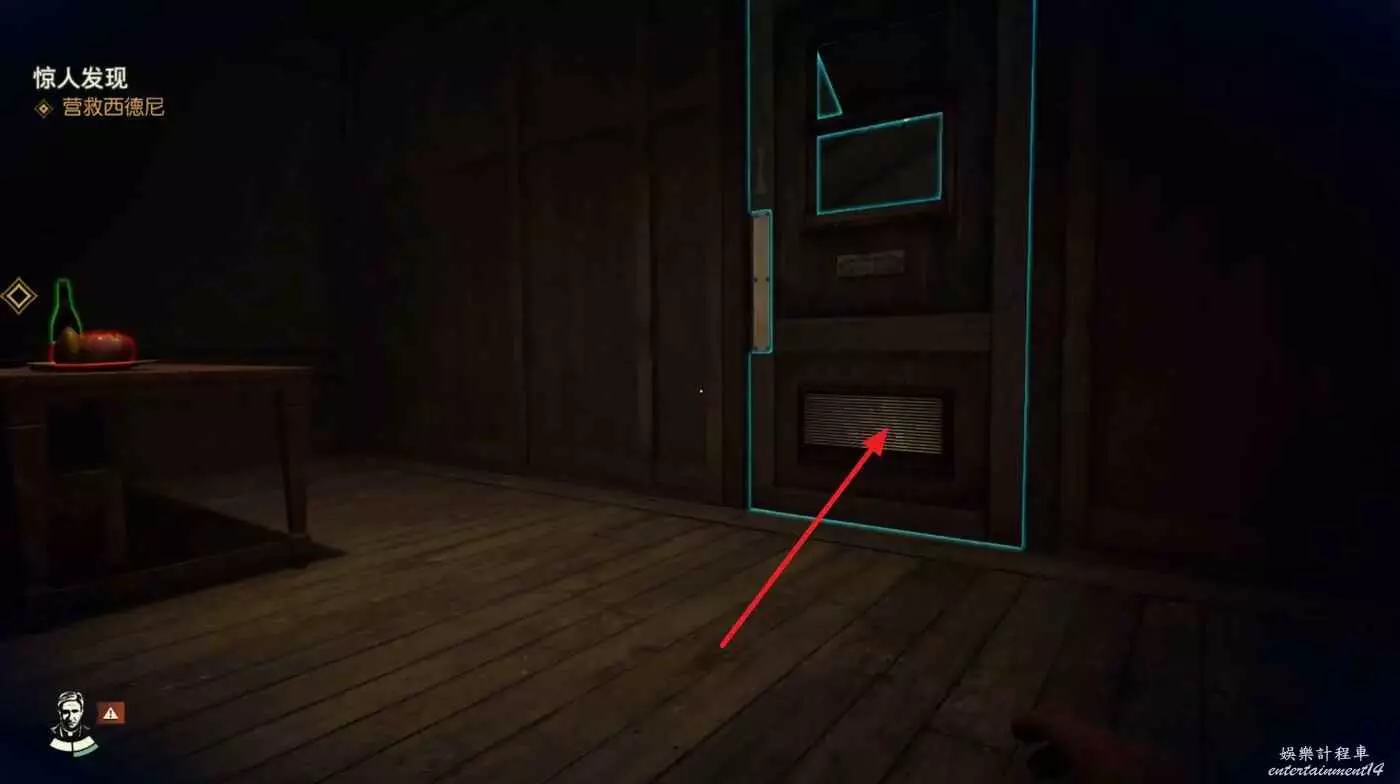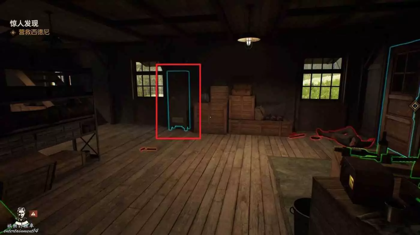 走廊右側桌子可以拿到筆記【凱薩琳的信】,目標NPC就在走廊左側的房間內。