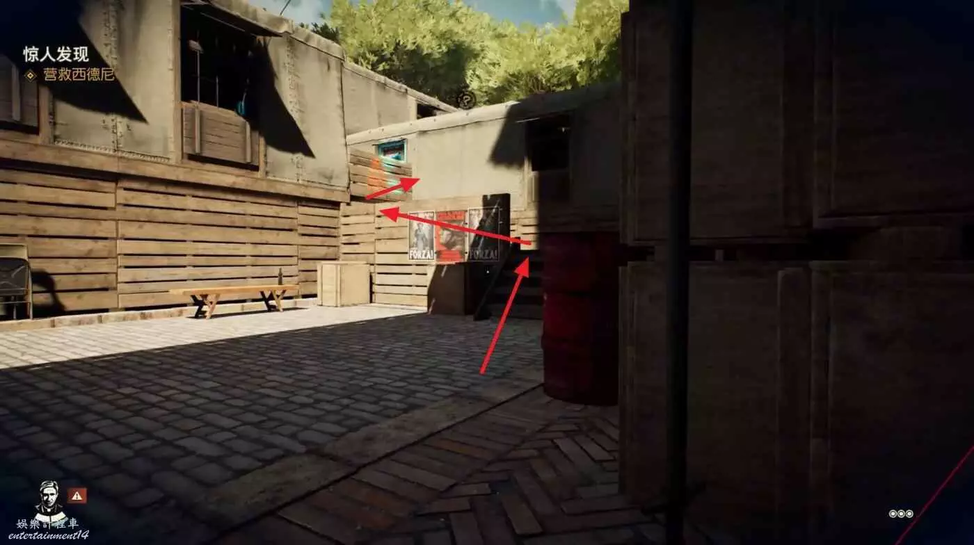 隨後前往下圖所示的入口,非常隱蔽,需要從左邊一點點爬上去。