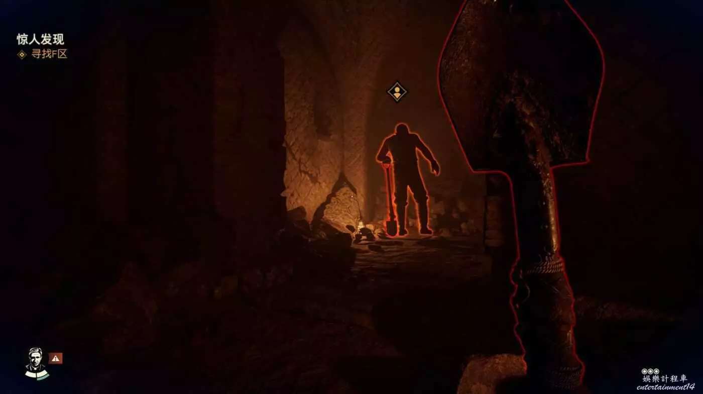 我們要找的NPC就位於F區身處,過去與其互動開始戰鬥,將其擊敗從身上拾取【地窖鑰匙】。