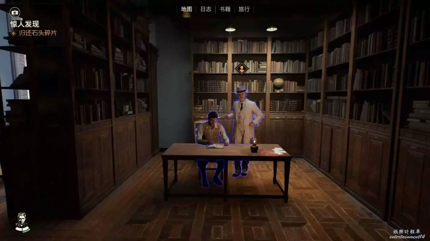 回到使徒圖書館,可以在安東尼奧辦公室下面一層圖書館找到教授倆人,與其對話將石頭碎片交給他們完成任務。